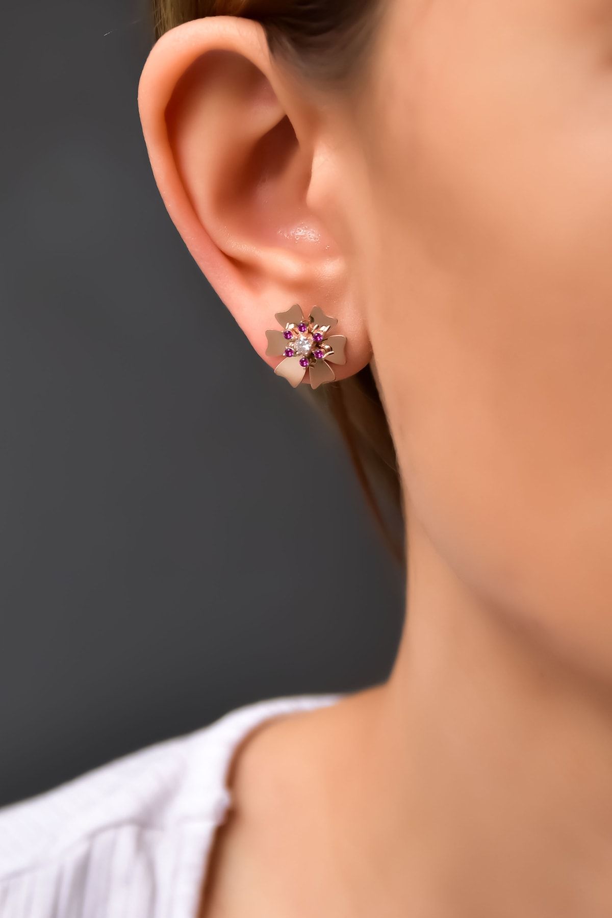 925 Ayar Gümüş . Kaplama: Rose. Ürün Ağırlığı :2,23 Gr. ( +-). En-Boy: 1,5 x 1,5 cm. Gümüş ve değerli taşlar nedeniyle belirtilen ortalama ürün ağırlığında ± %5 sapma olabilmektedir. Teslimat: Ürün ahşap hediye kutusunda gönderilecektir. Kullanım: Parfüm, dezenfektan, çamaşır suyu gibi kimyasallardan uzak tutunuz.