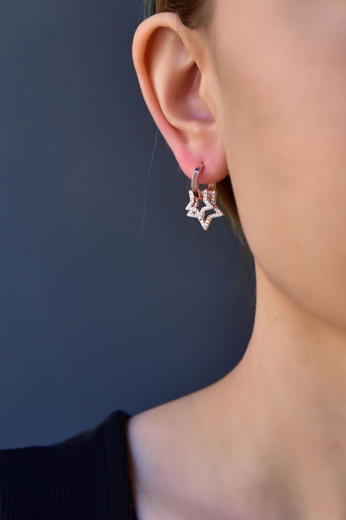 Maden : 925 Ayar Gümüş. Kaplama: Rose. Halka Çapı:1,3 cm. Büyük Figür En x Boy: 1,5 cm. Küçük Figür En x Boy:1,1 cm. Ürün Ağırlığı : 4,29 Gr ( +-) Gümüş ve değerli taşlar nedeniyle belirtilen ortalama ürün ağırlığında ± %5 sapma olabilmektedir. Kullanım: Parfüm, dezenfektan, çamaşır suyu gibi kimyasallardan uzak tutunuz.
