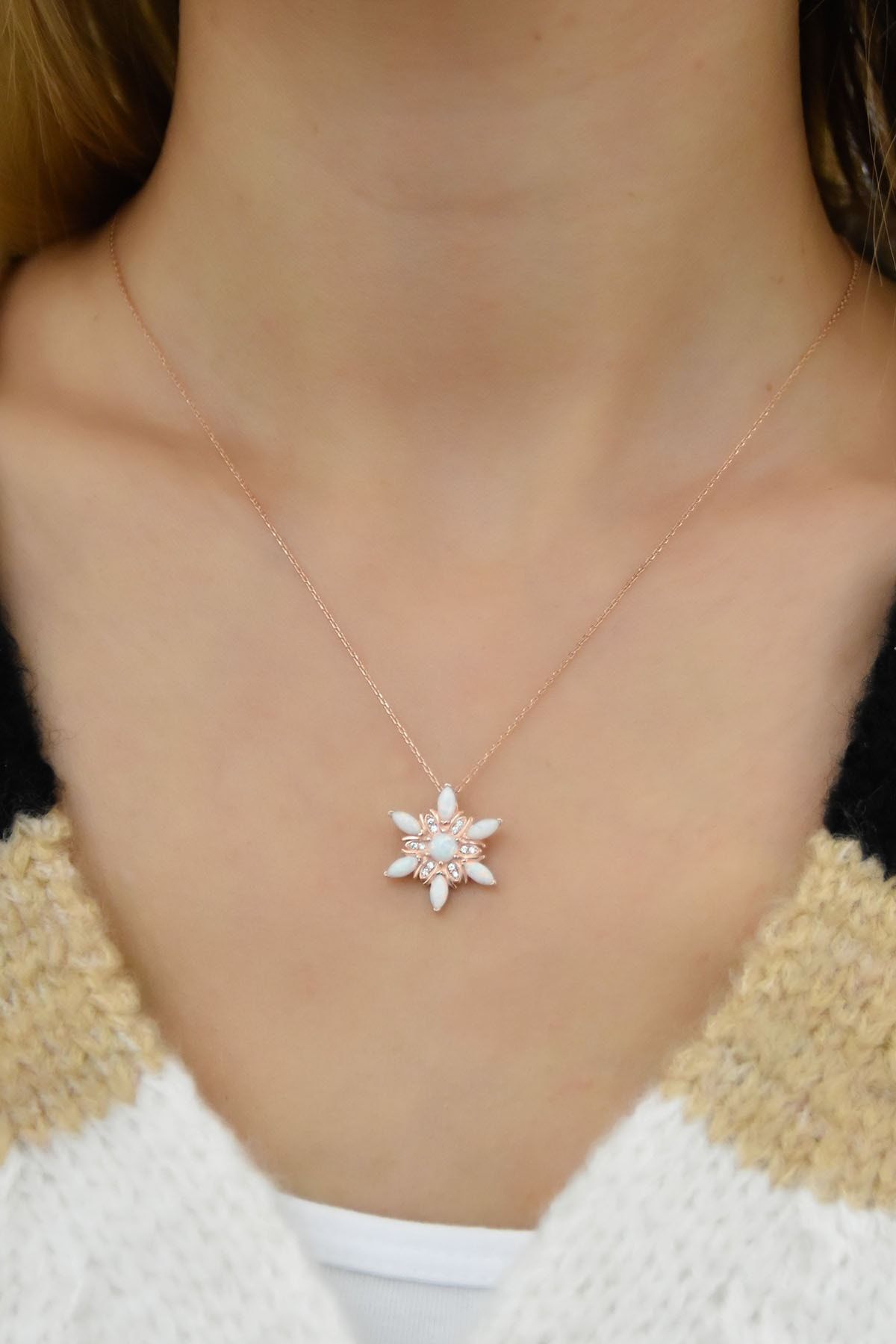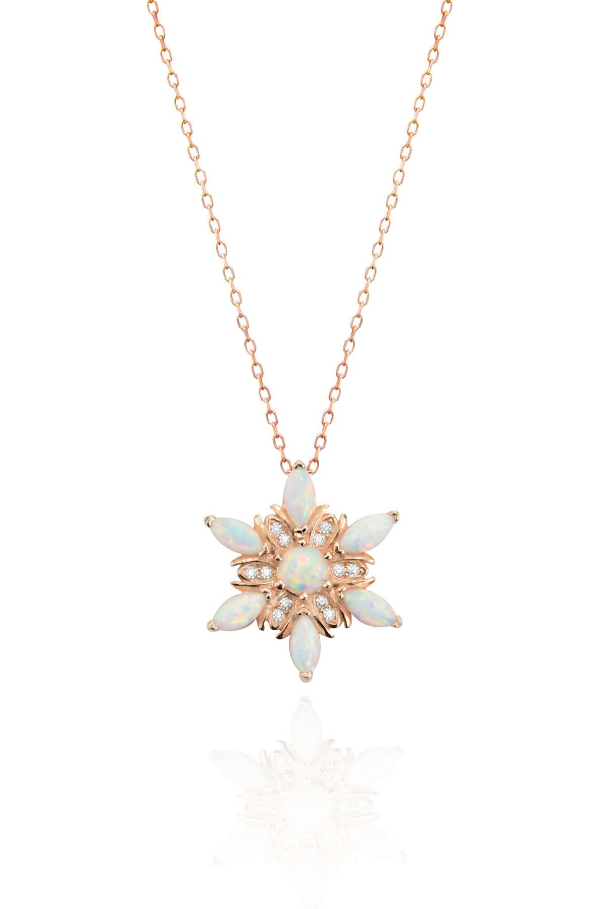 925 Ayar Gümüş Rose Kaplama İtal Opal Kar tanesi Çiçeği Kolye