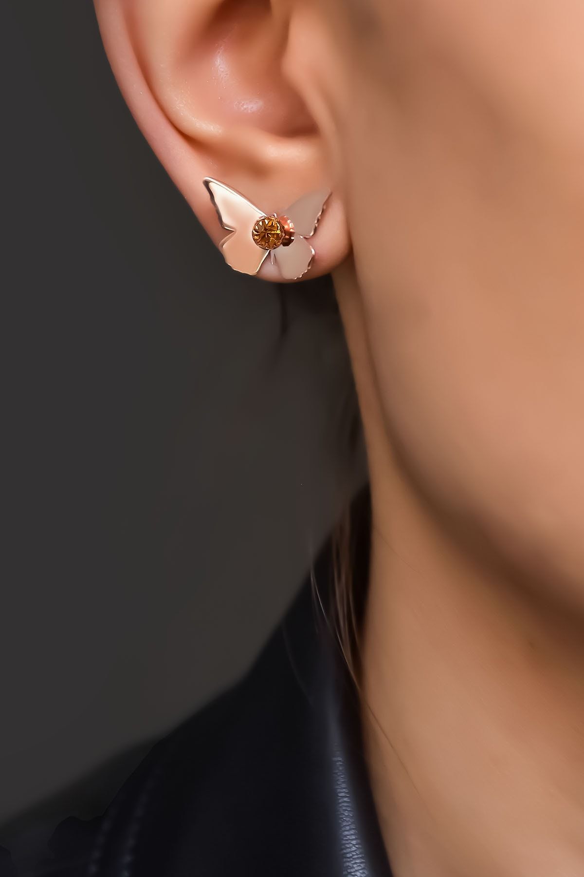 Etiketler925 Ayar Gümüş Rose Kaplama Kasım Ayı Doğum Taşlı Kelebek Küpe