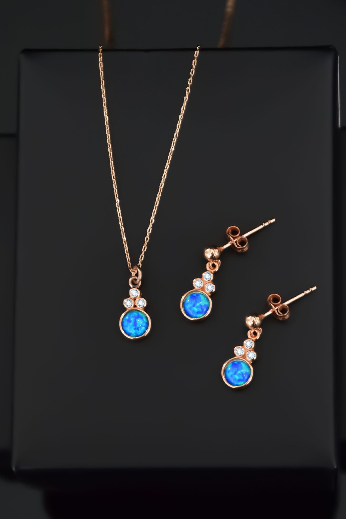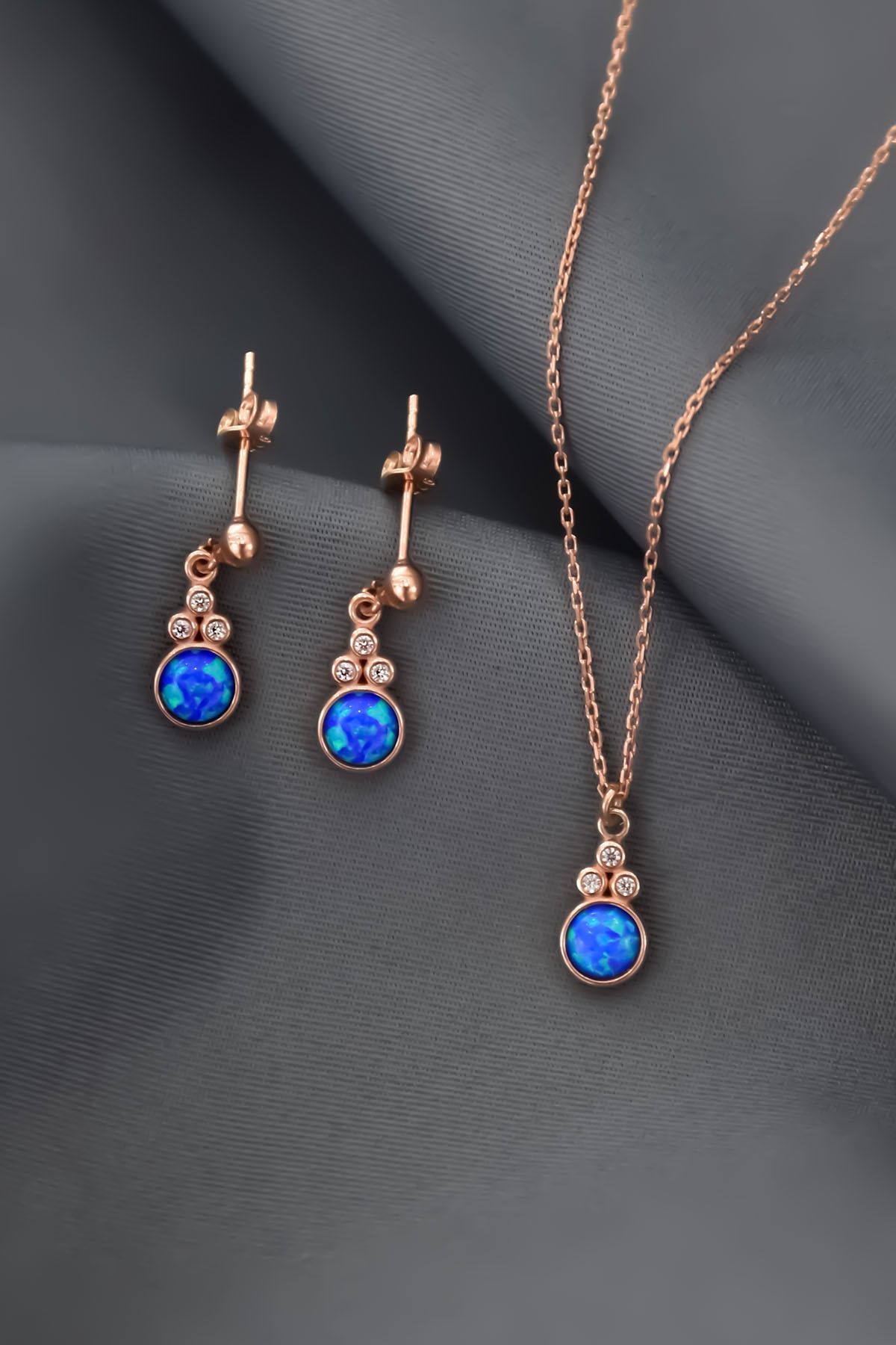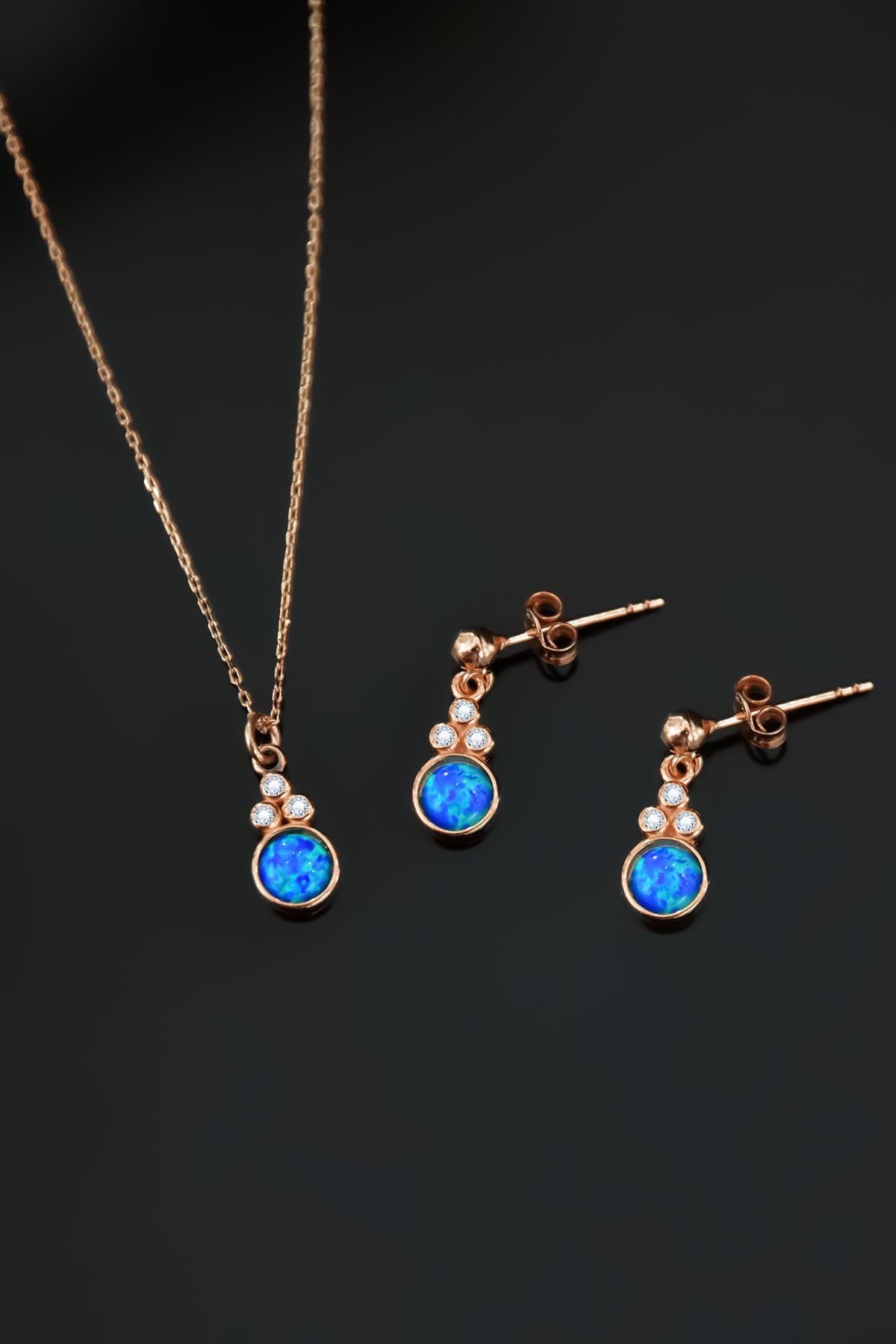 | Etiketler | 925 Ayar Gümüş Rose Kaplama Mavi Opal Yuvarlak Kolye Ve Çiftli Küpe |