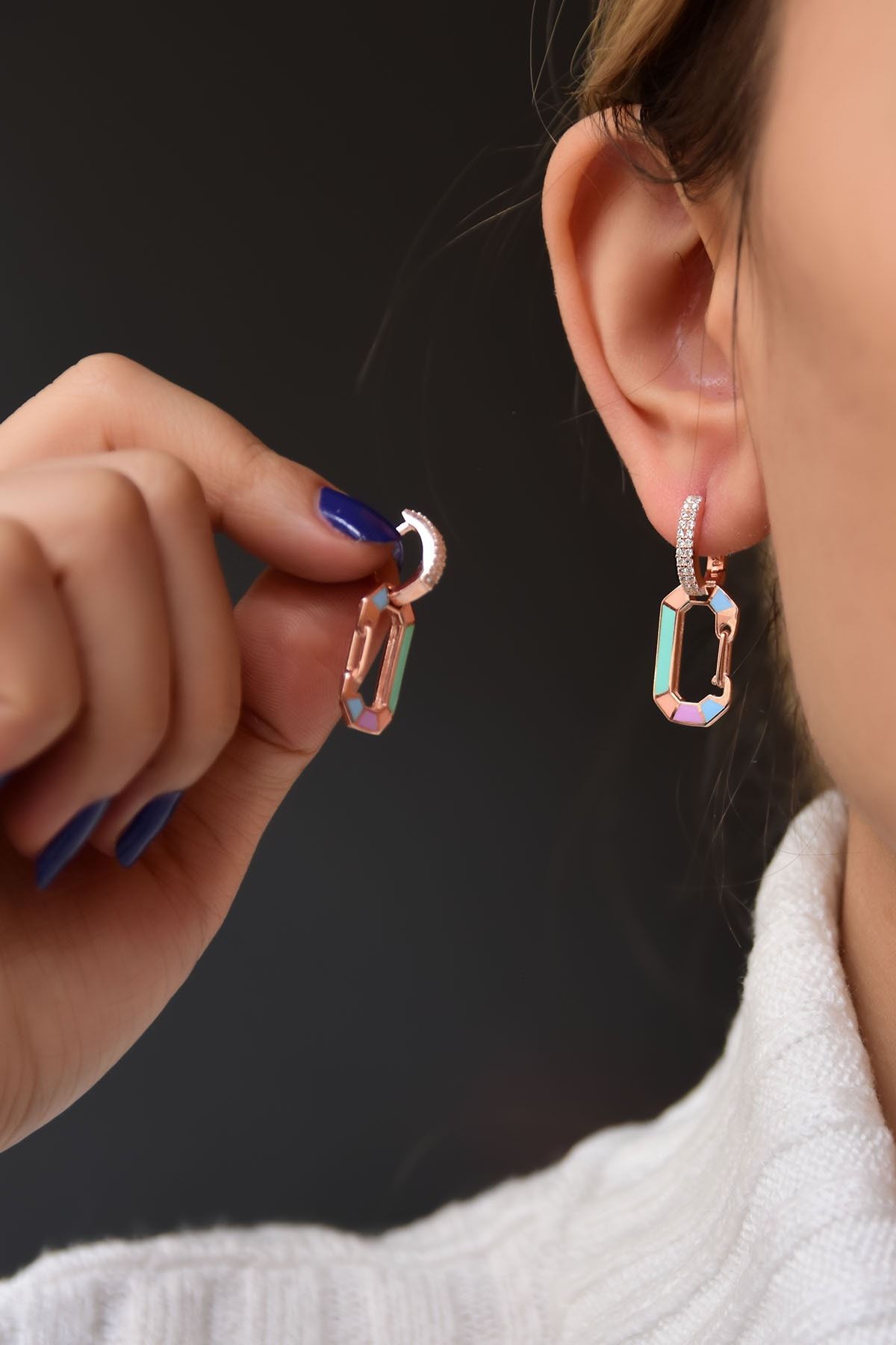 Maden : 925 ayar gümüş. Kaplama: Rose. Halka Çapı:1 cm. Figür En x boy : 1*2 cm. Ürün ağırlığı :5,05 gr ( +-). Gümüş ve değerli taşlar nedeniyle belirtilen ortalama ürün ağırlığında ± %10 sapma olabilmektedir. Teslimat: Ürün ahşap hediye kutusunda gönderilecektir. Kullanım: Parfüm, dezenfektan, çamaşır suyu gibi kimyasallardan uzak tutunuz.