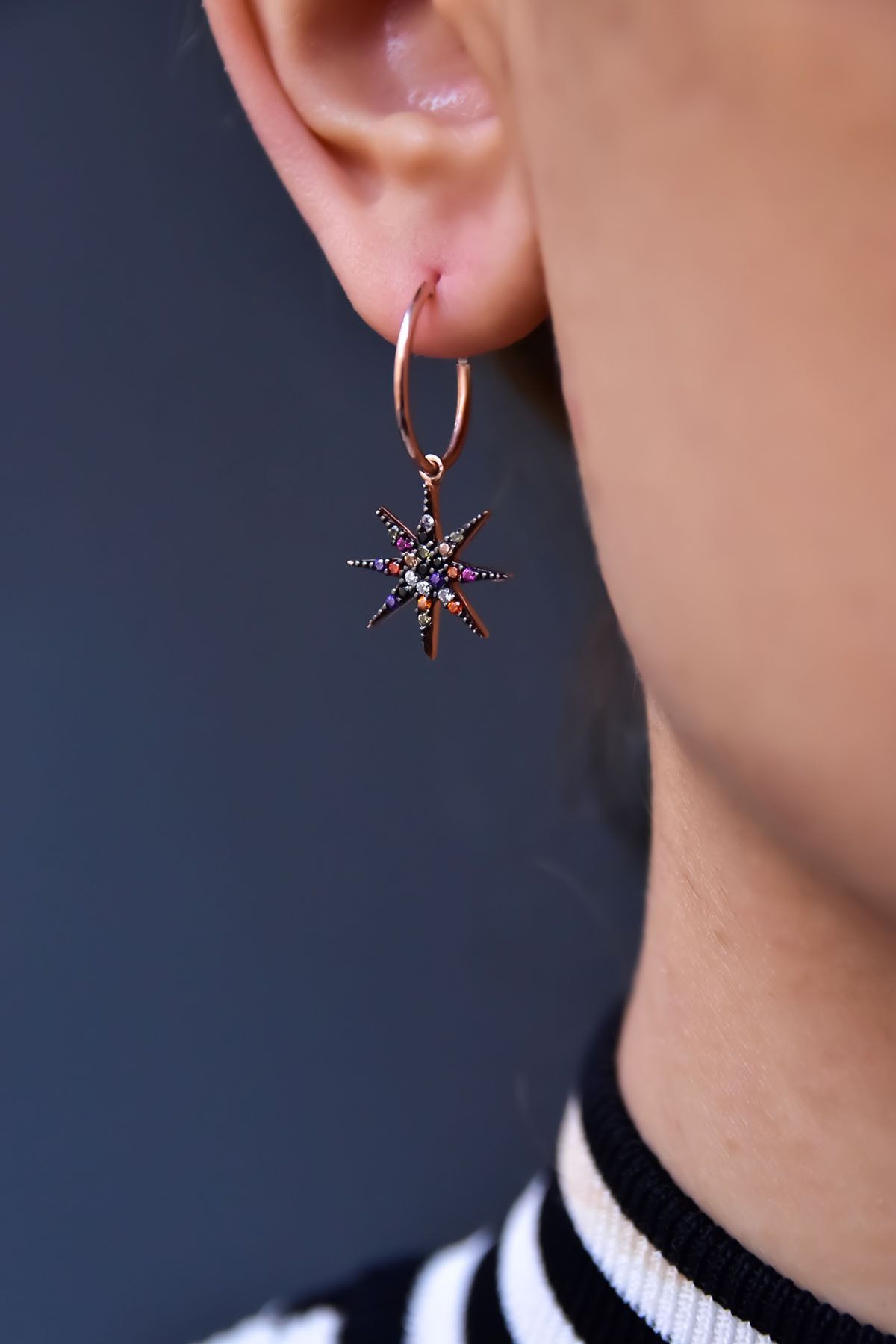 Maden : 925 Ayar Gümüş. Kaplama: Rose Kaplama. Figür : 1,5 cm. Çap: 1,3 cm. Taş: Zirkon. Ürün Ağırlığı : 2,2 Gr ( +-). Ürün çift gönderilmektedir. Gümüş ve değerli taşlar nedeniyle belirtilen ortalama ürün ağırlığında ± %5 sapma olabilmektedir. Teslimat: Ürün ahşap hediye kutusunda gönderilecektir. Kullanım: Parfüm, dezenfektan, çamaşır suyu gibi kimyasallardan uzak tutunuz.
