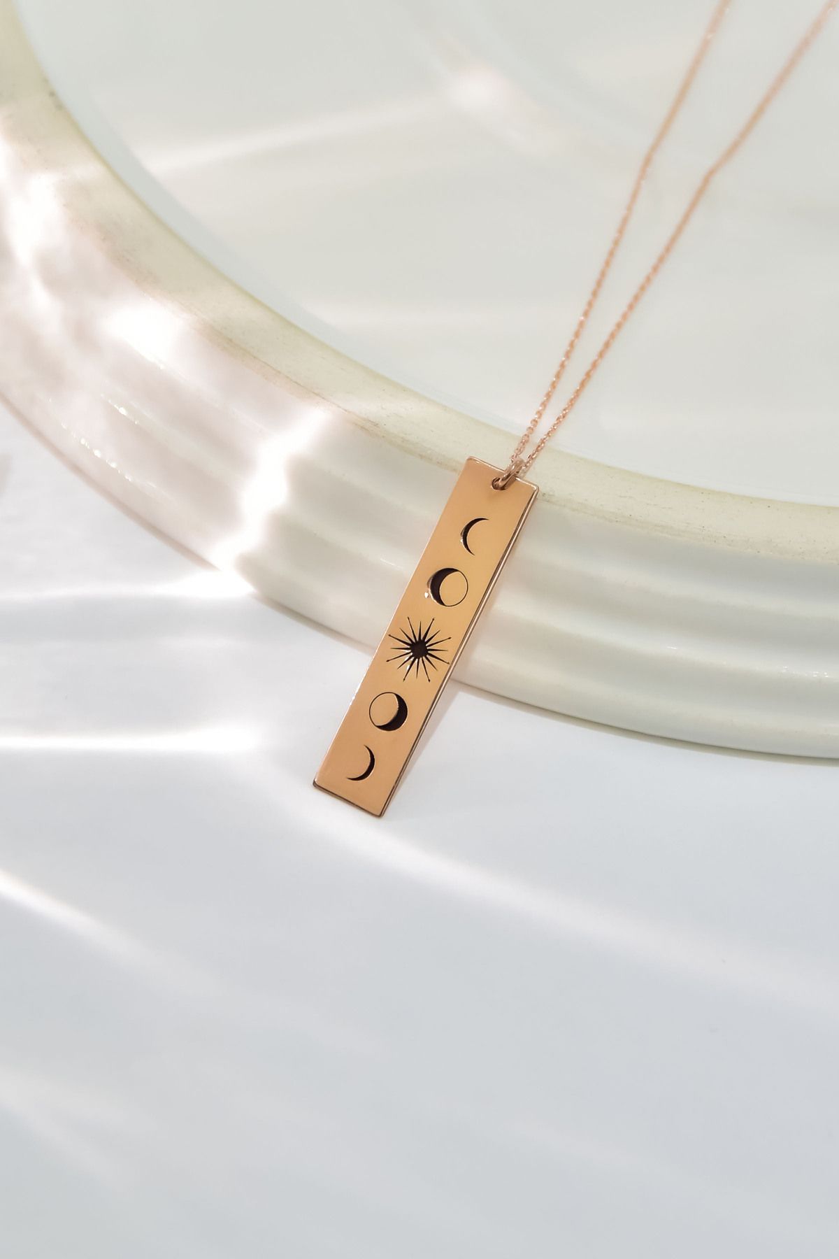 Maden Ayar: 925 Ayar Gümüş. Zincir Uzunluğu: 42 cm. Maden Rengi: Rose. Ürün Ağırlığı: 2,54 Gr. ( +-). En*Boy: 1 cm* 3,9 cm. Teslimat: Ürün kutu ile gönderilecektir. ''Gümüş ürünlerin yapısı gereği kararmalar meydana gelebilir daha uzun ömürlü olması için; Parfüm gibi kozmetik ürünlere direkt temas etmediği sürece ürün ömrü daha uzun olacaktır.''