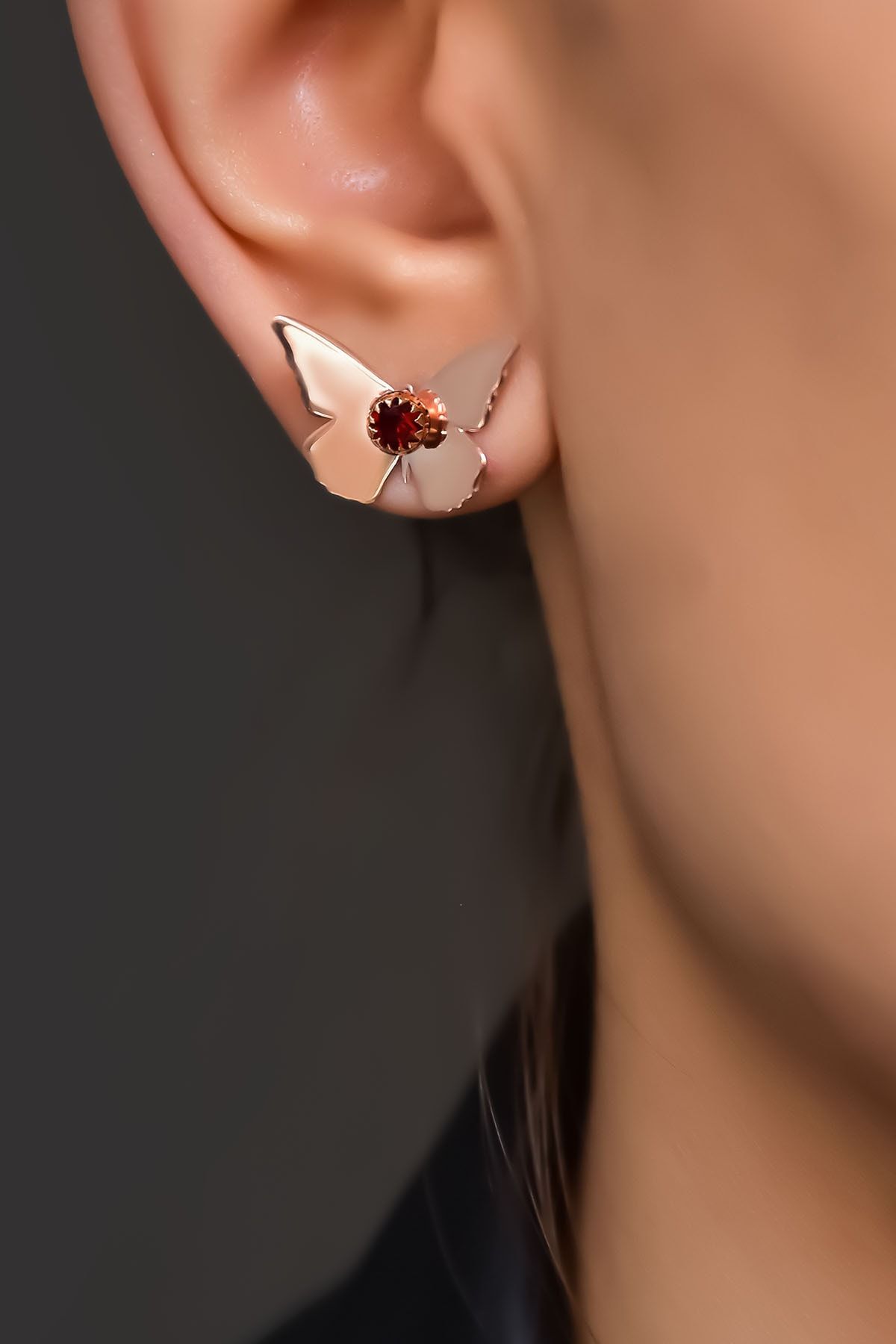 Etiketler925 Ayar Gümüş Rose Kaplama Ocak Ayı Doğum Taşlı Kelebek Küpe