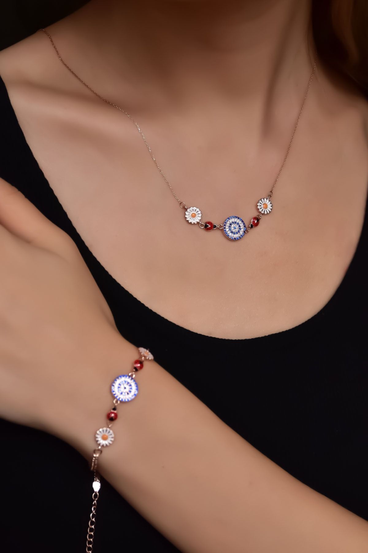 | Etiketler | 925 Ayar Gümüş Rose Kaplama Papatya Uğur Böceği Nazar Kolye Ve Bileklik Set |