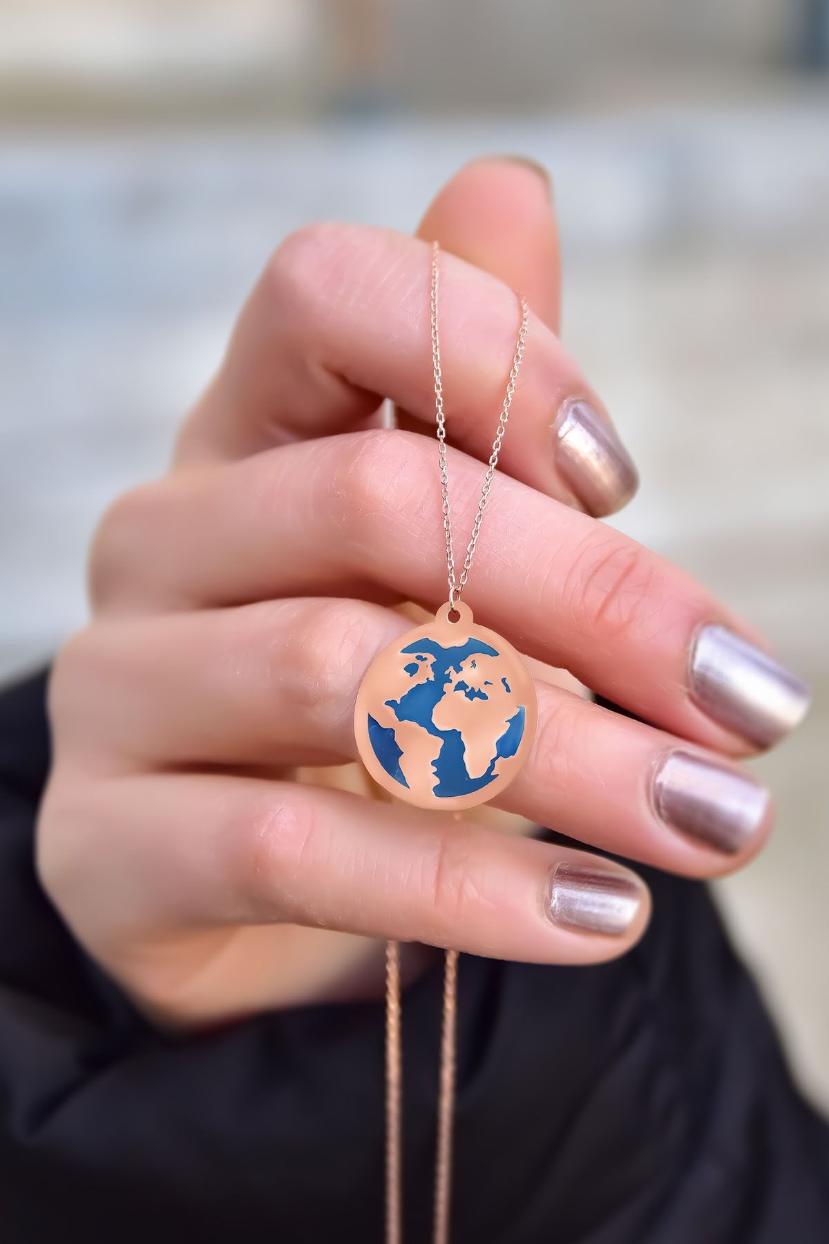 925 Ayar Gümüş Rose Kaplama Sıralı Beş Yıldız Zirkon Taşlı Kolye