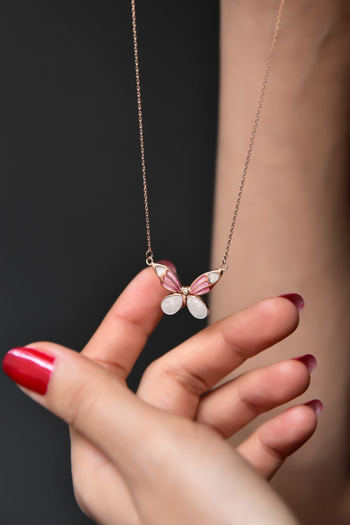 Maden Ayar: 925 Ayar Gümüş. Maden Kaplama: Rose. Ürün Ağırlığı: 2,13 Gr. ( +-). Zincir Uzunluk: 42 cm. Ürün Ebat En x Boy: 2 x 1,6 cm. Teslimat: Ürün ahşap hediye kutusunda gönderilecektir. ''Gümüş ürünlerin yapısı gereği kararmalar meydana gelebilir daha uzun ömürlü olması için Parfüm gibi kozmetik ürünlere direkt temas etmediği sürece ürün ömrü daha uzun olacaktır.''