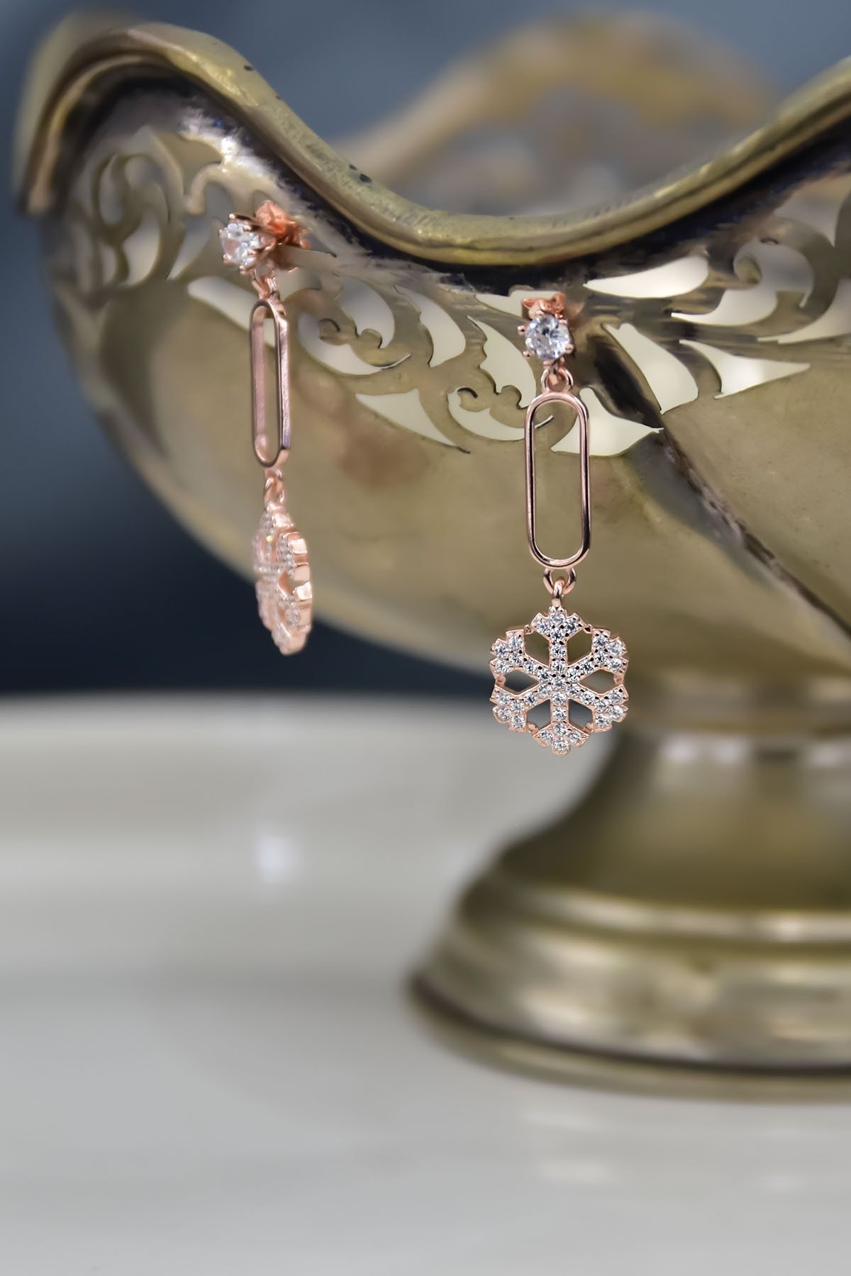 Maden : 925 Ayar Gümüş. Kaplama: Rose. Boy :2,8 cm. Taş Cinsi: Zirkon. Ürün Ağırlığı : 2,37 Gr ( +-) Gümüş ve değerli taşlar nedeniyle belirtilen ortalama ürün ağırlığında ± %5 sapma olabilmektedir. Kullanım: Parfüm, dezenfektan, çamaşır suyu gibi kimyasallardan uzak tutunuz.
