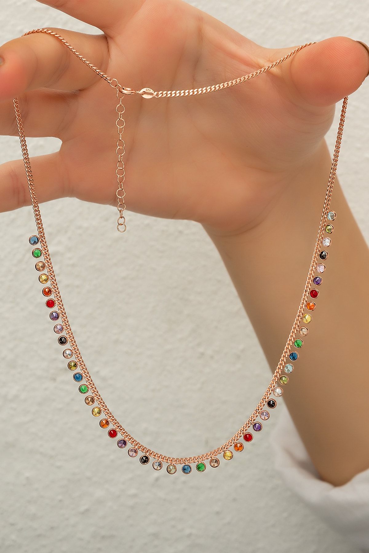 Etiketler925 Ayar Gümüş Rose Kaplama Sallantılı Mix Taşlı Kolye