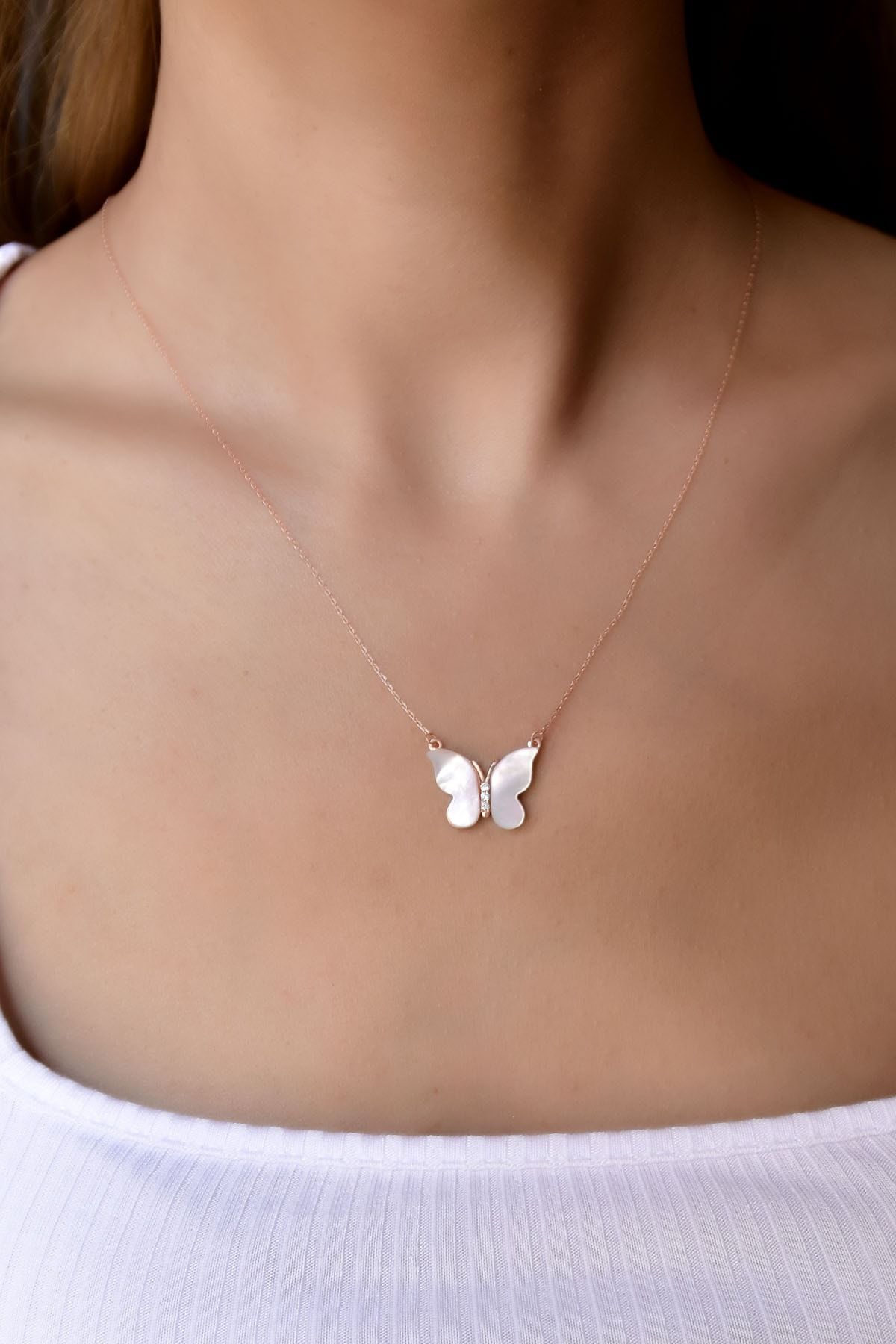 Maden : 925 Ayar Gümüş. Kaplama: Rose Altın.En x Boy: 2,5 x 2,0 cm. Zincir Uzunluğu: 42 cm.Taş: Sedef, Zirkon. Ürün Ağırlığı : 2,35 Gr ( +-). Gümüş ve değerli taşlar nedeniyle belirtilen ortalama ürün ağırlığında ± %5 sapma olabilmektedir. Teslimat: Ürün ahşap hediye kutusunda gönderilecektir.Kullanım: Parfüm,dezenfektan,çamaşır suyu gibi kimyasallardan uzak tutunuz.