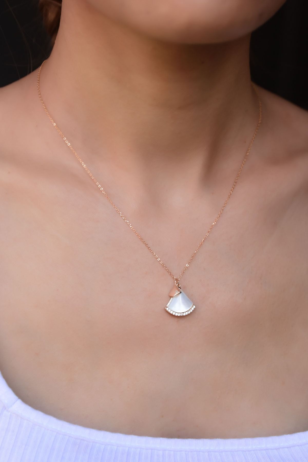 Maden : 925 Ayar Gümüş. Kaplama: Rose Altın. Taş: Sedef, Zirkon. Figür: Büyük 1,30 cm. Küçük 0,6 cm. Zincir Uzunluğu: 42 cm. Ürün Ağırlığı : 2,80 Gr ( +-). Gümüş ve değerli taşlar nedeniyle belirtilen ortalama ürün ağırlığında ± %5 sapma olabilmektedir. Teslimat: Ürün ahşap hediye kutusunda gönderilecektir. Kullanım: Parfüm,dezenfektan,çamaşır suyu gibi kimyasallardan uzak tutunuz.