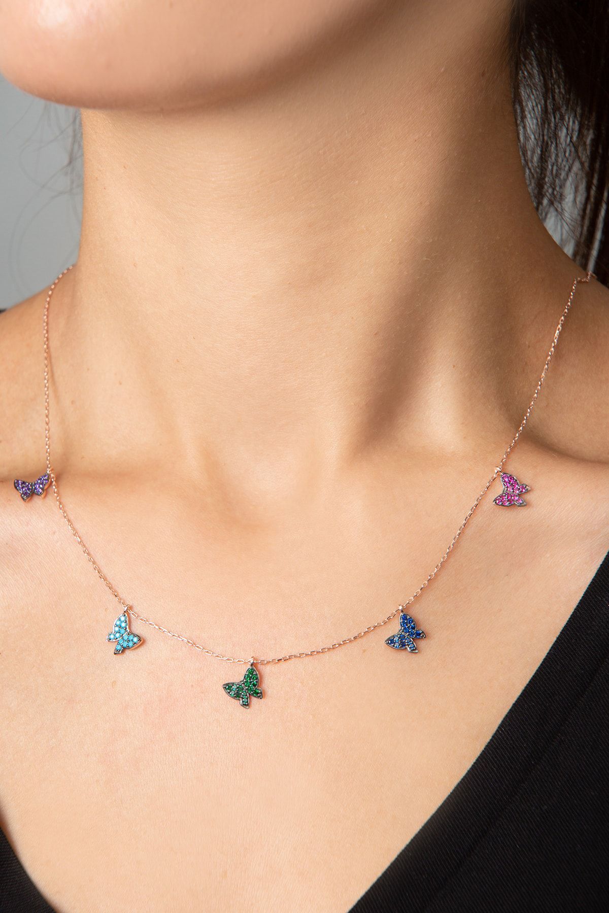 Kadın Renkli Kelebek Model 925 Ayar Gümüş Kolye.Maden : 925 Ayar Gümüş.Renk : Rose Altın.Taş: Zirkon.Zincir Uzunluğu: 42 cm.Teslimat: Papatya Silver tarafından Ürün ahşap hediye kutusunda gönderilecektir.Ürün Ağırlığı : 2,50 Gr ( +-). Gümüş ve değerli taşlar nedeniyle belirtilen ortalama ürün ağırlığında ± %5 sapma olabilmektedir.