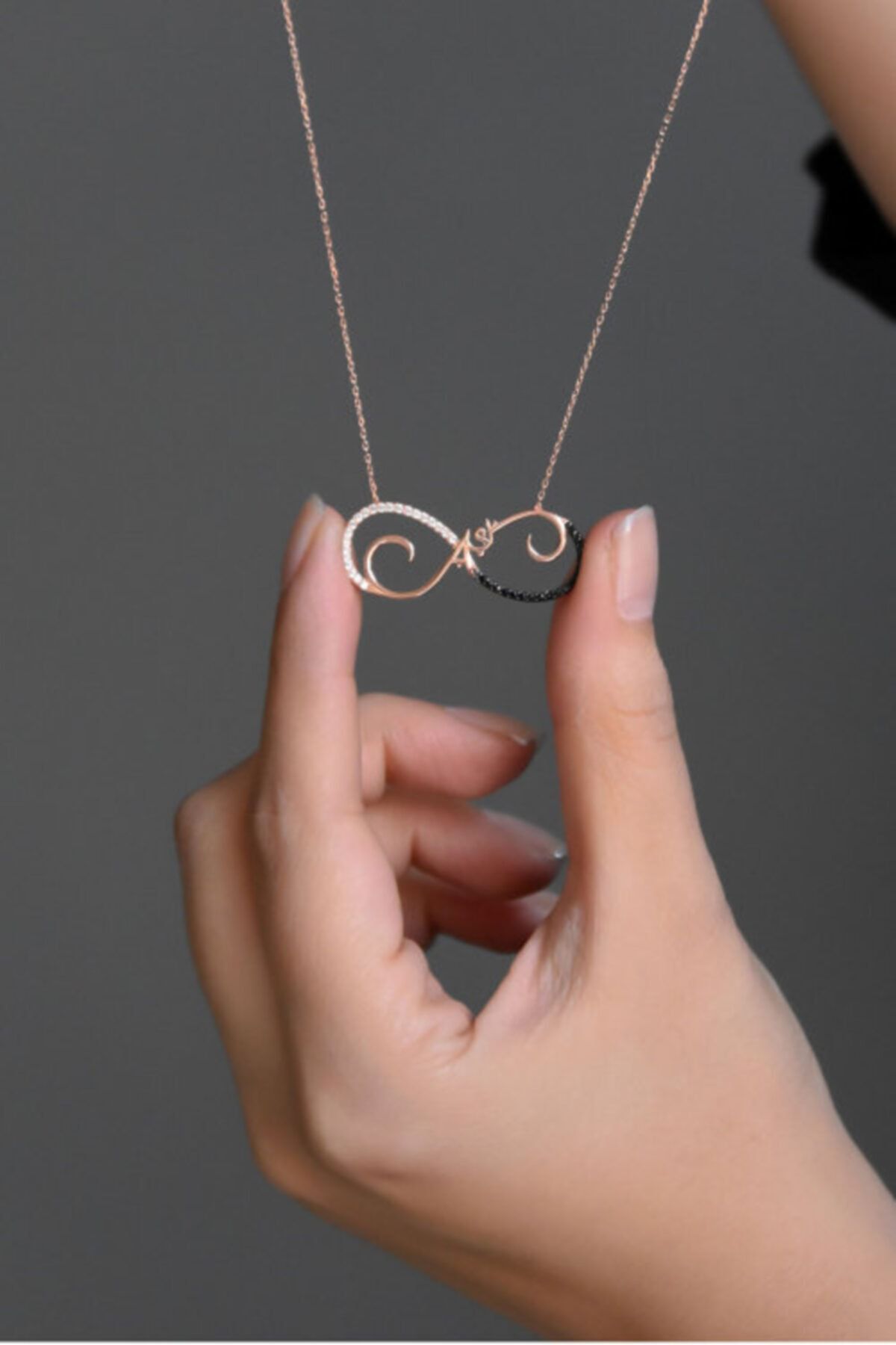 Etiketler925 Ayar Gümüş Rose Kaplama Sonsuzluk Aşk Kolye
