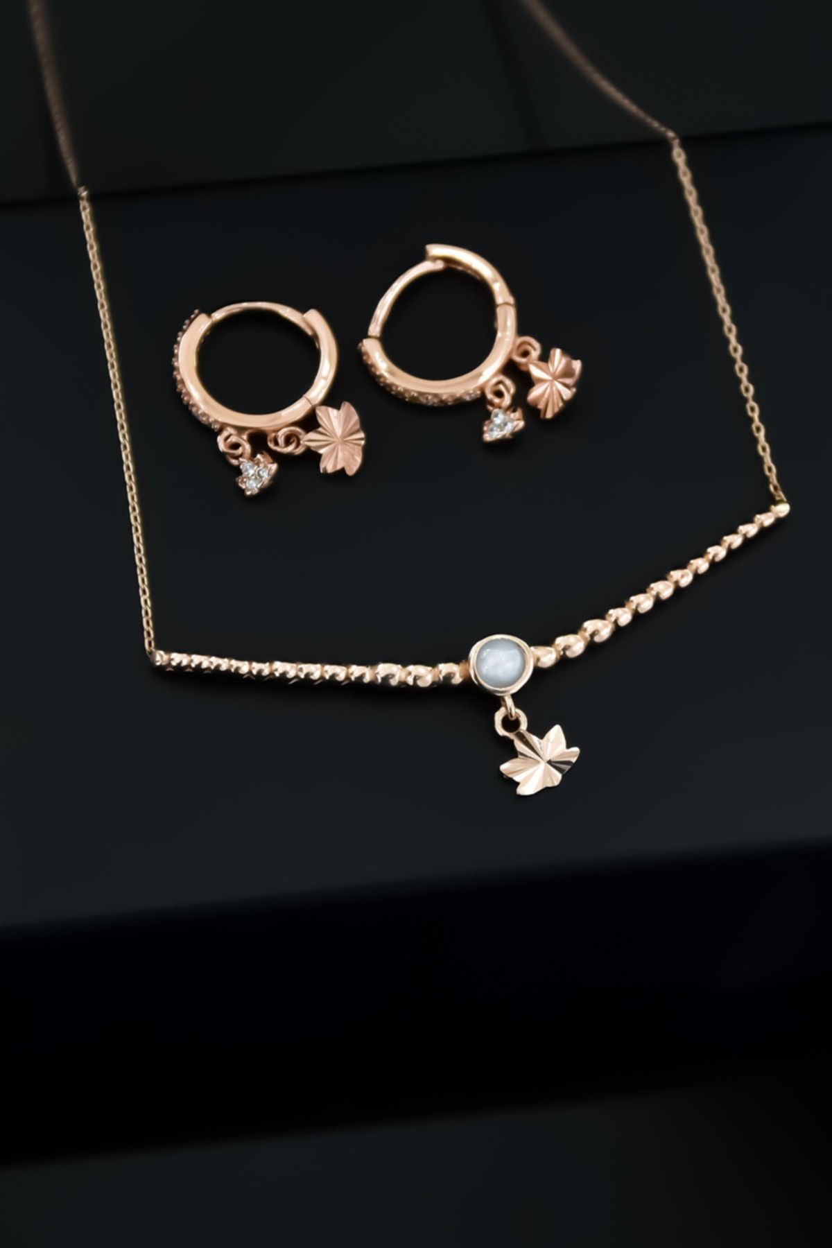 | Etiketler | 925 Ayar Gümüş Rose Kaplama Top Motifli Beyaz Ay Taşı Lotus Kolye Ve Küpe Set |