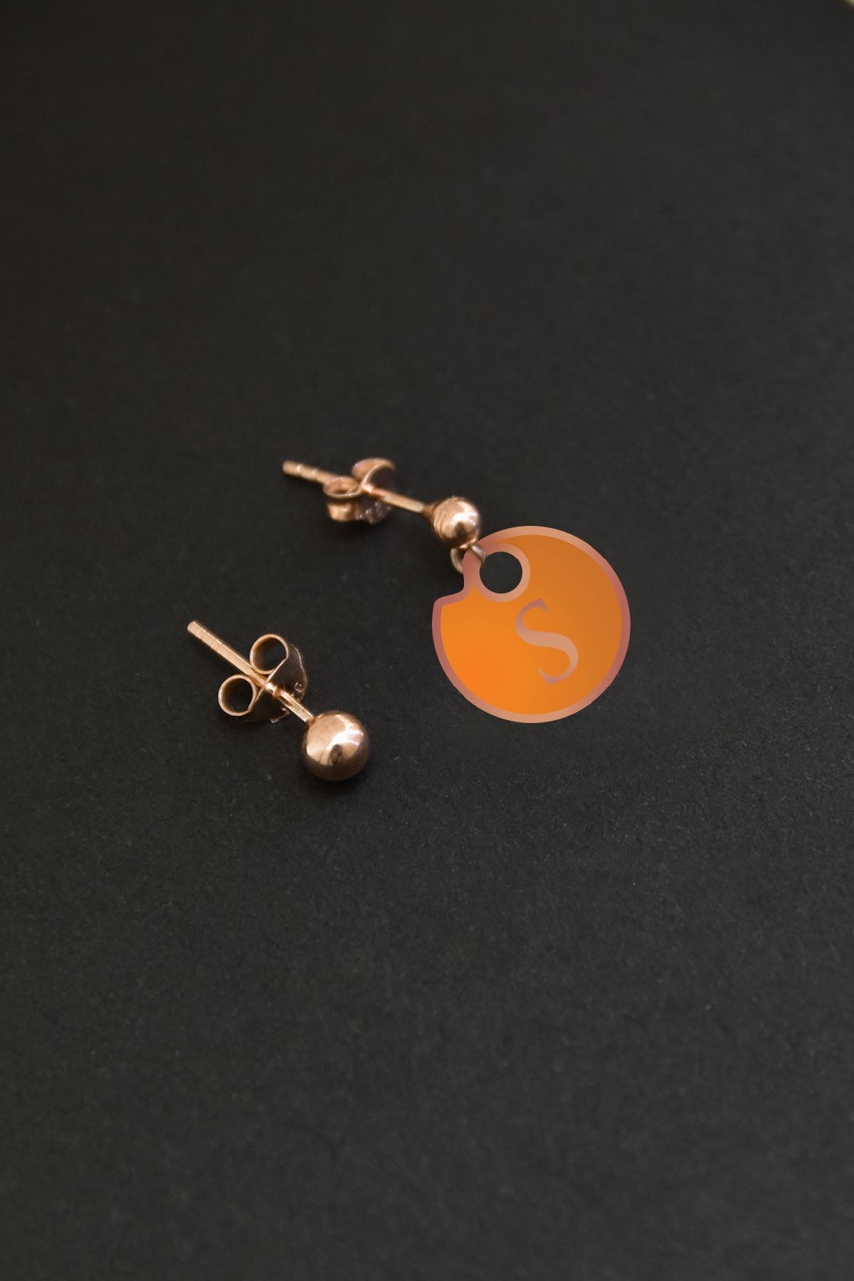 925 Ayar Gümüş Rose Kaplama Turuncu Mine S Harf Çivili Küpe