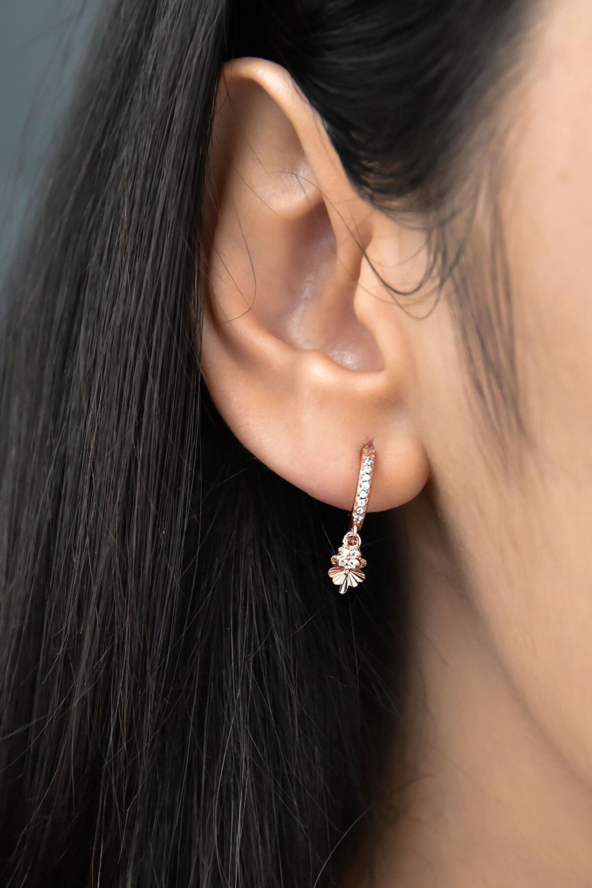 Etiketler925 Ayar Gümüş Rose Kaplama Yonca Figürlü Halka Kadın Küpe