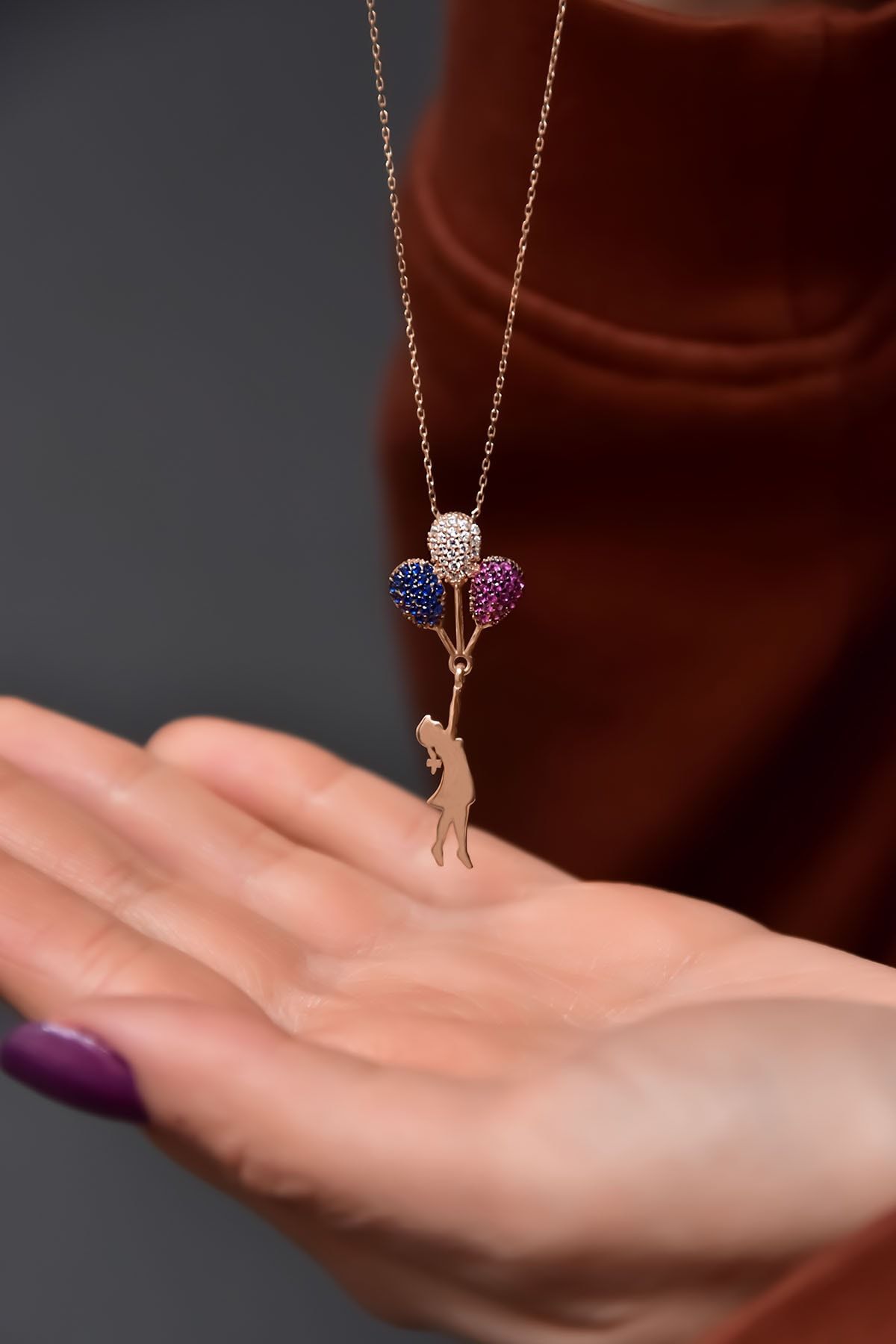 925 Ayar Gümüş Rose Kaplama Mayıs Ayı Doğum Taşı Damla Kolye