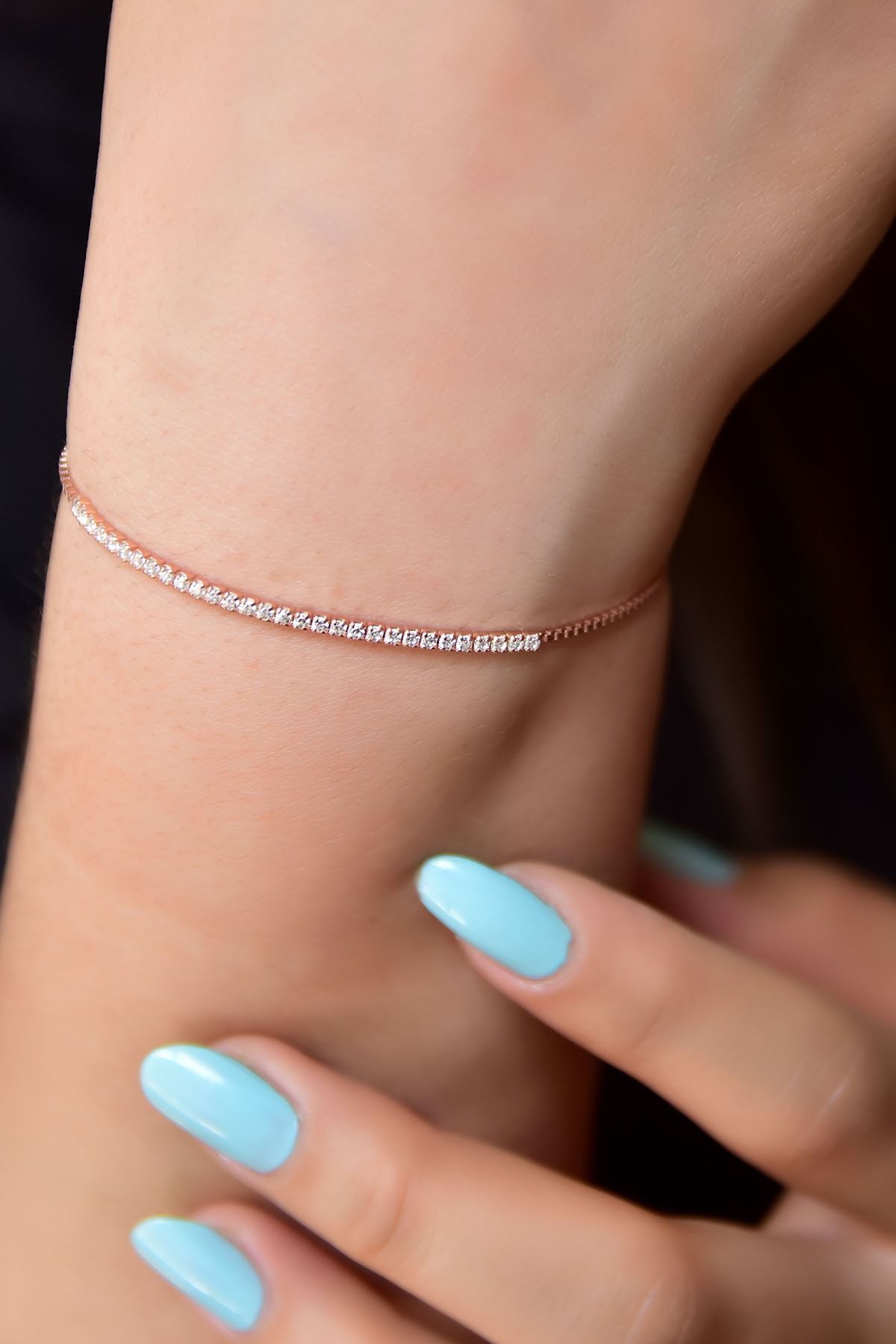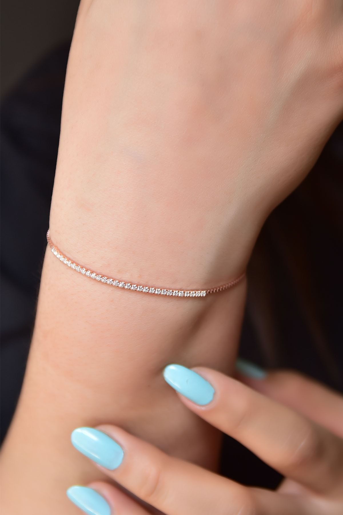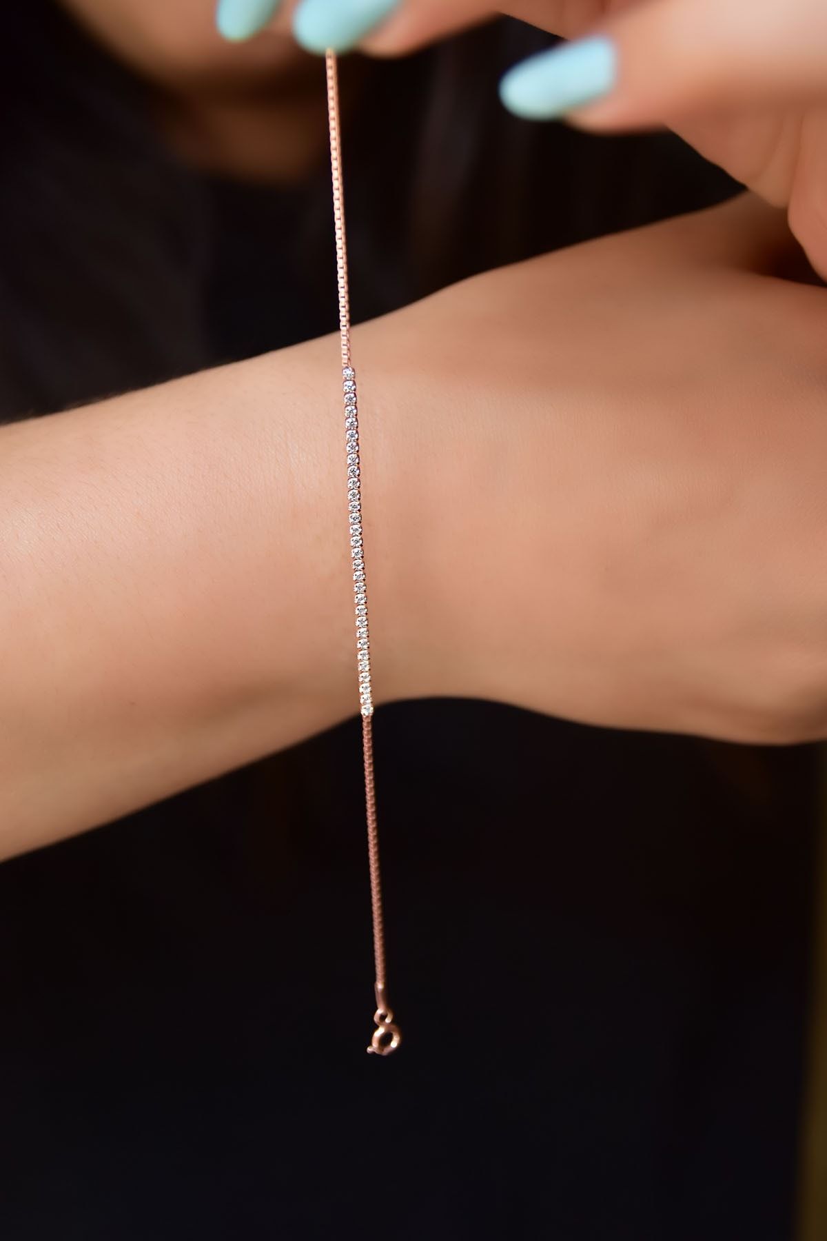 925 Ayar Gümüş Rose Kaplama Zirkon Taşlı Su Yolu Bileklik