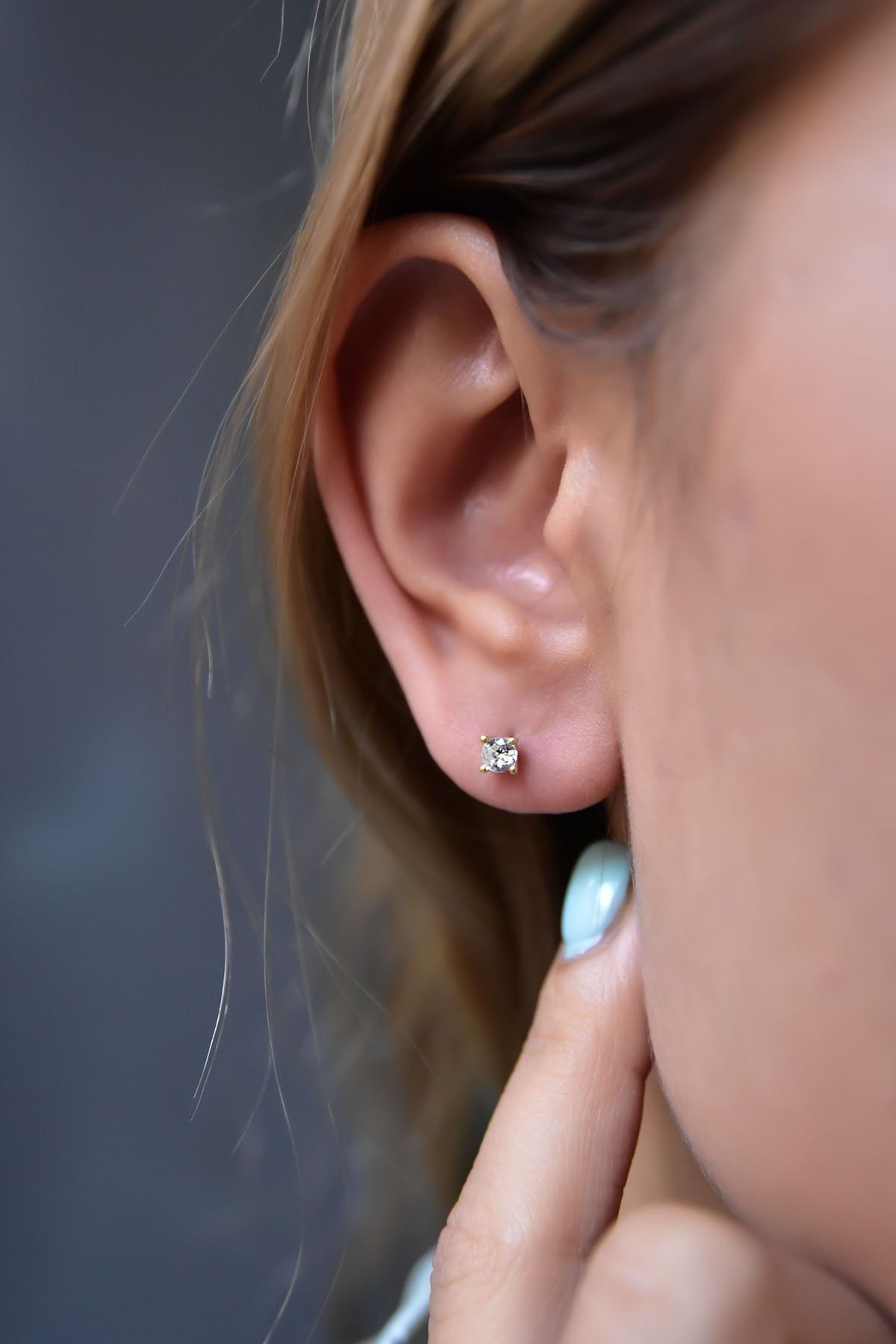Etiketler925 Ayar Gümüş Rose Kaplama Zirkon Taşlı Tektaş Küpe 4,0mm.