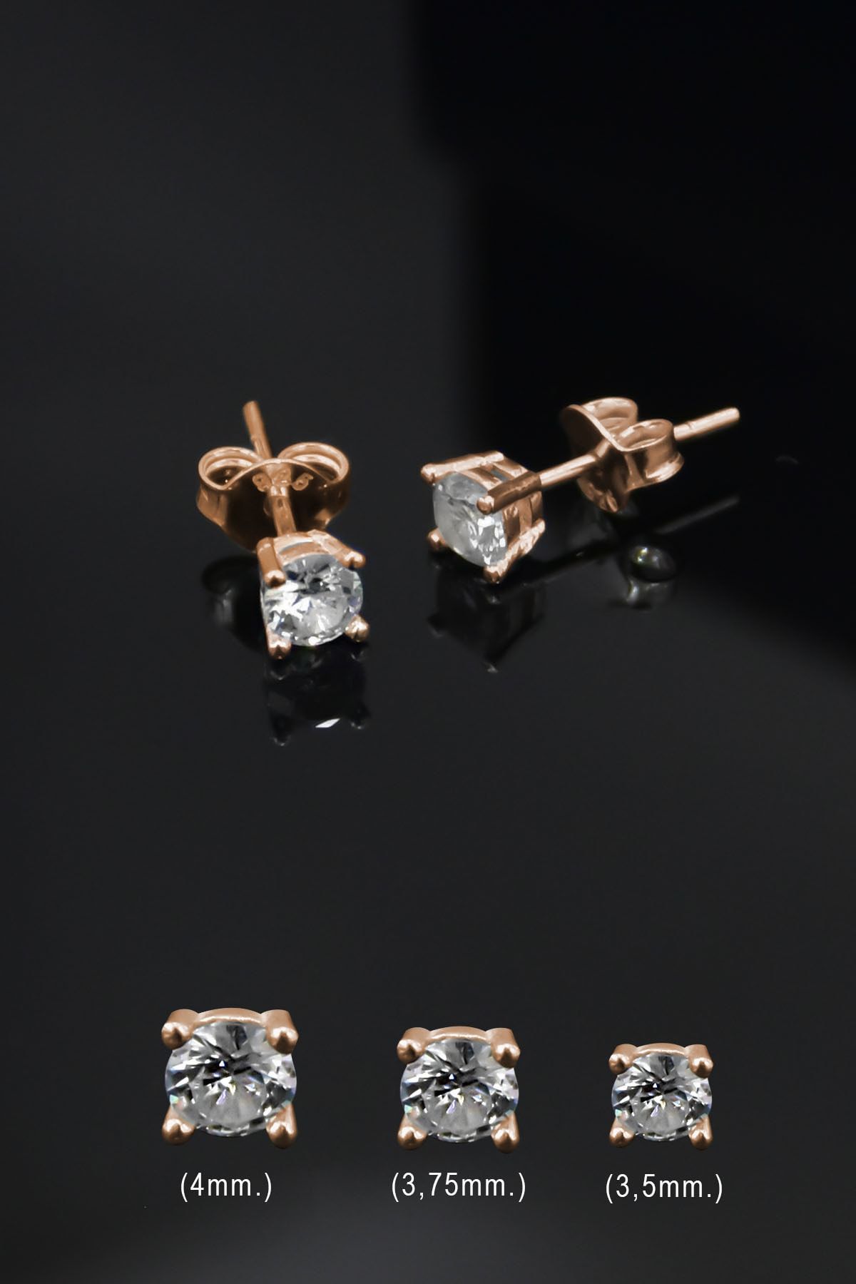 925 Ayar Gümüş Rose Kaplama Zirkon Taşlı Tektaş Küpe 4,0mm.