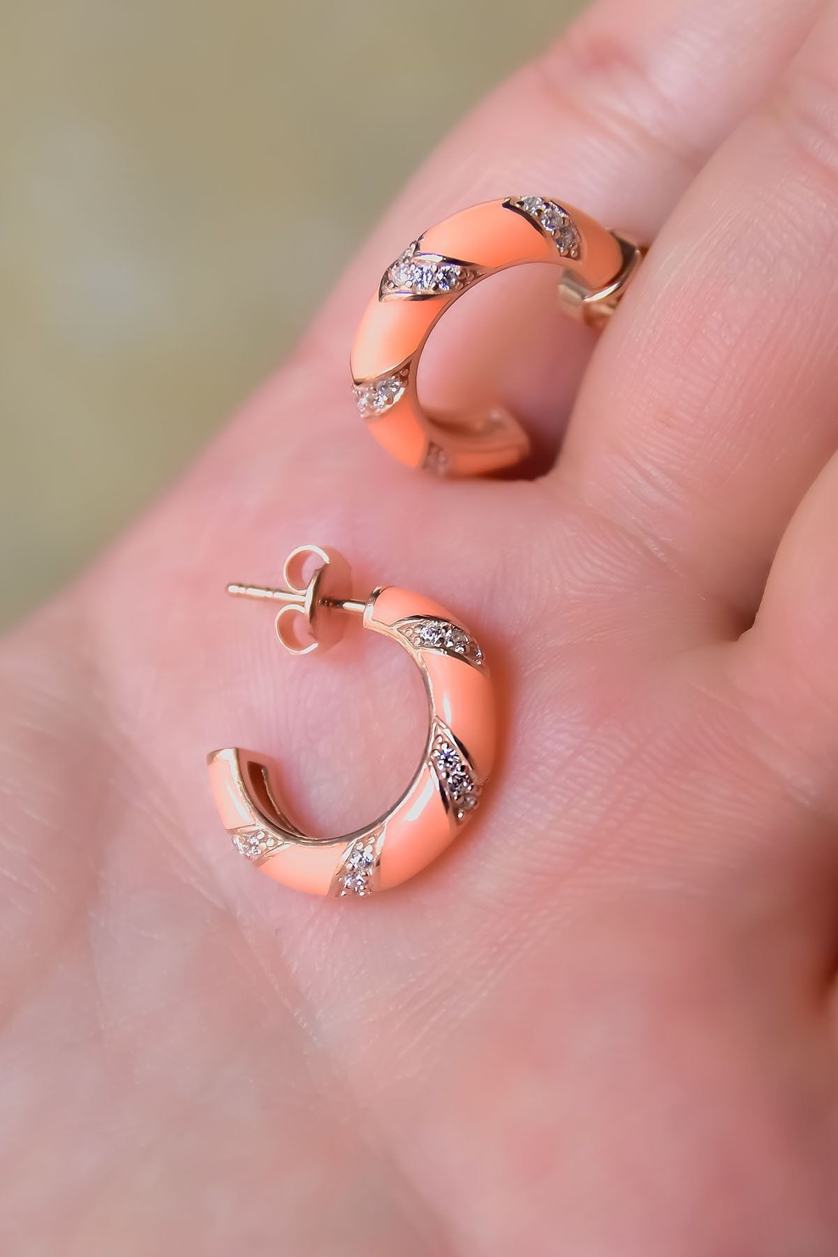 925 Ayar Gümüş Gold Kaplama Zirkon Taşlı Üçlü Iç Içe Geçme Halka Küpe