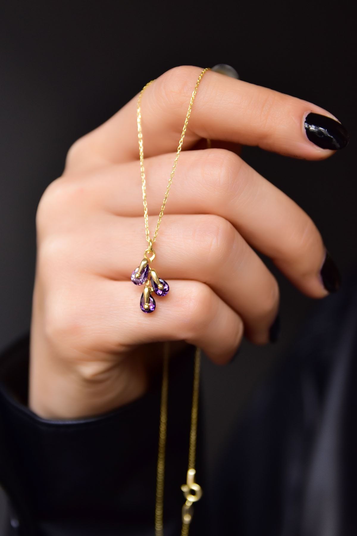 925 Ayar Gümüş.Rose,Rodaj,Gold.Doğum Ayı Kolye.12 Doğum Taşlı Kübik Drop Kolye.