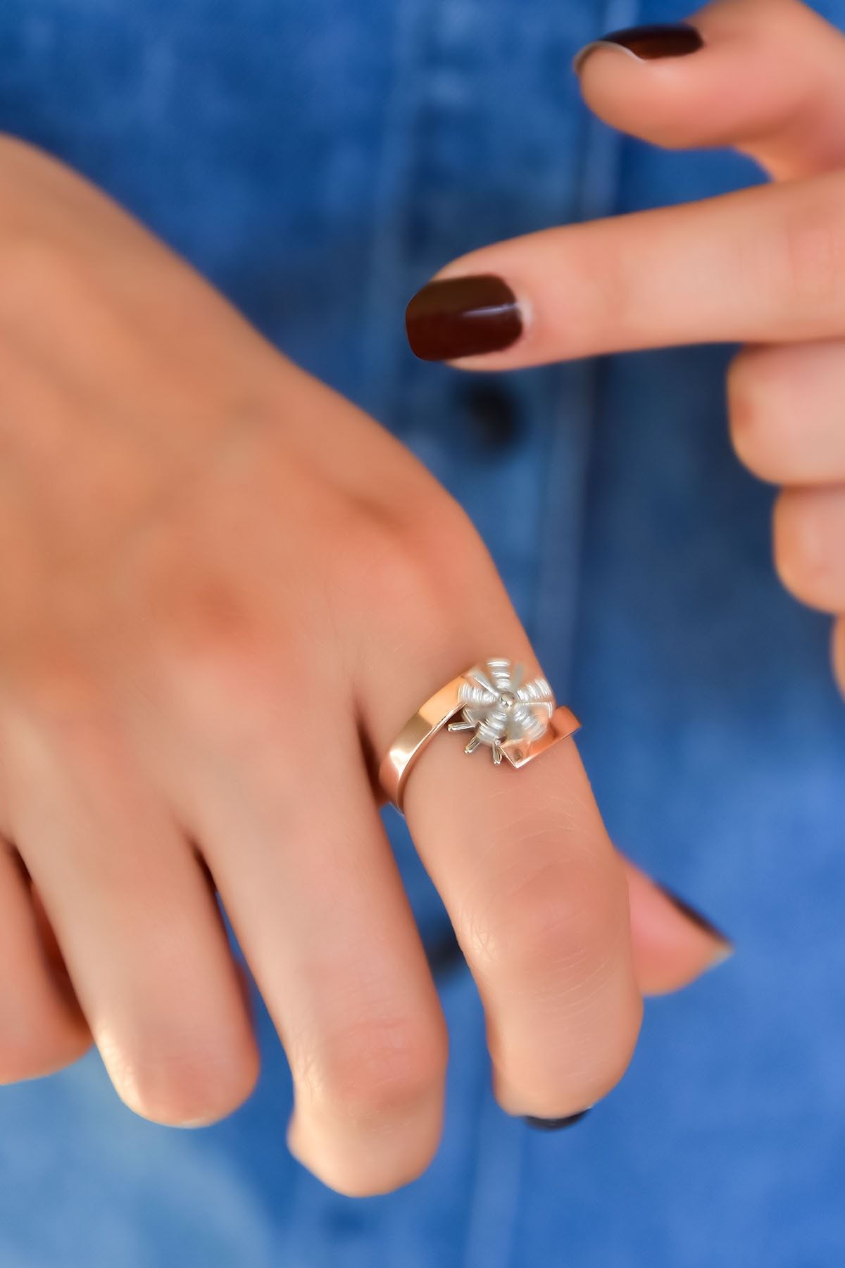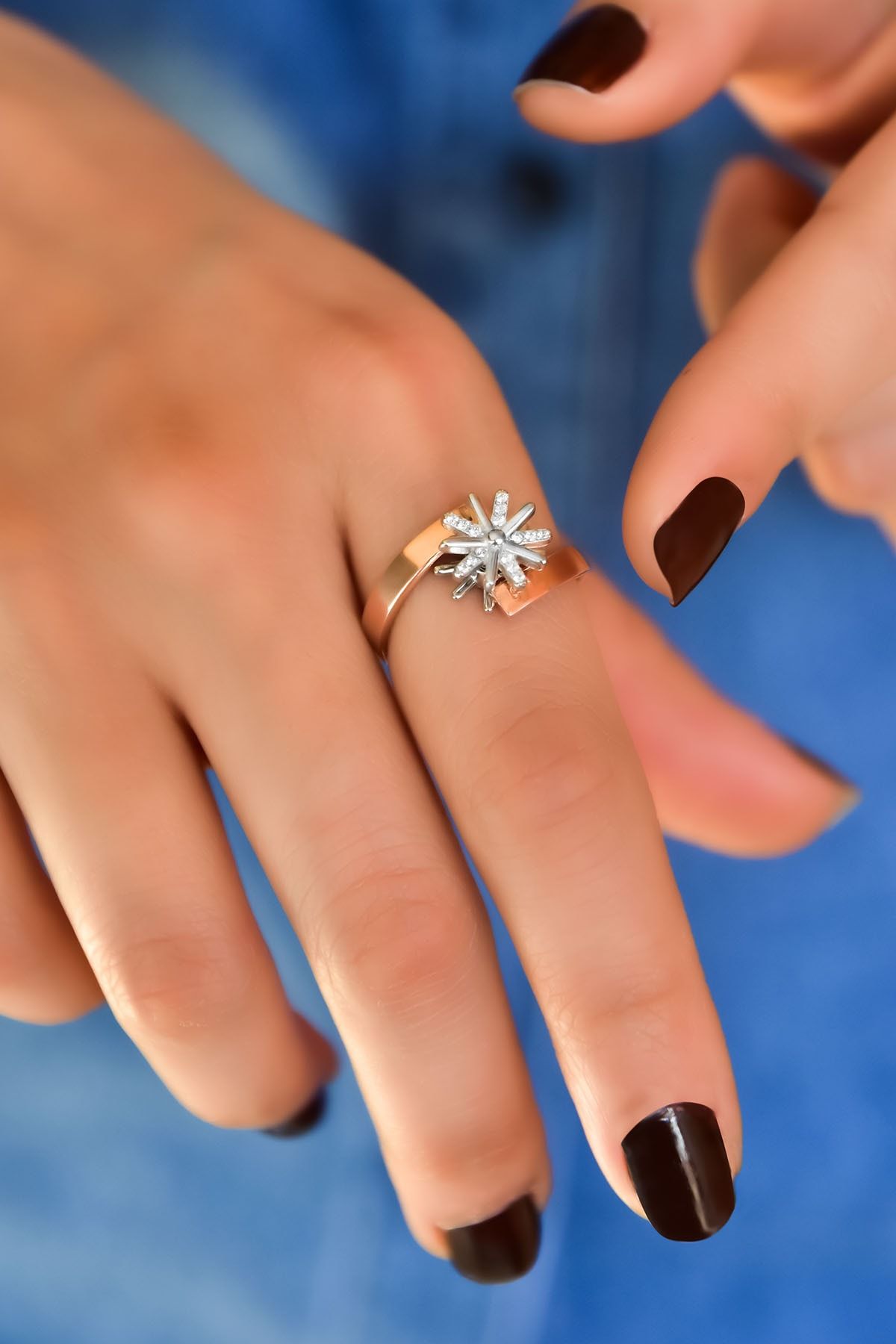 925 Ayar Gümüş Rose Rodyum Kaplama Zirkon Taşlı Dönen Güneş Yüzük