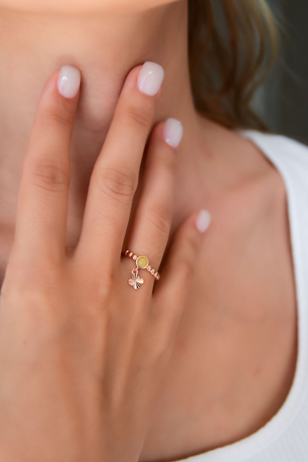 Etiketler925 Ayar Gümüş Sarı Ay Taşlı Çiçek Motifli Ayarlanabilir Kadın Yüzük
