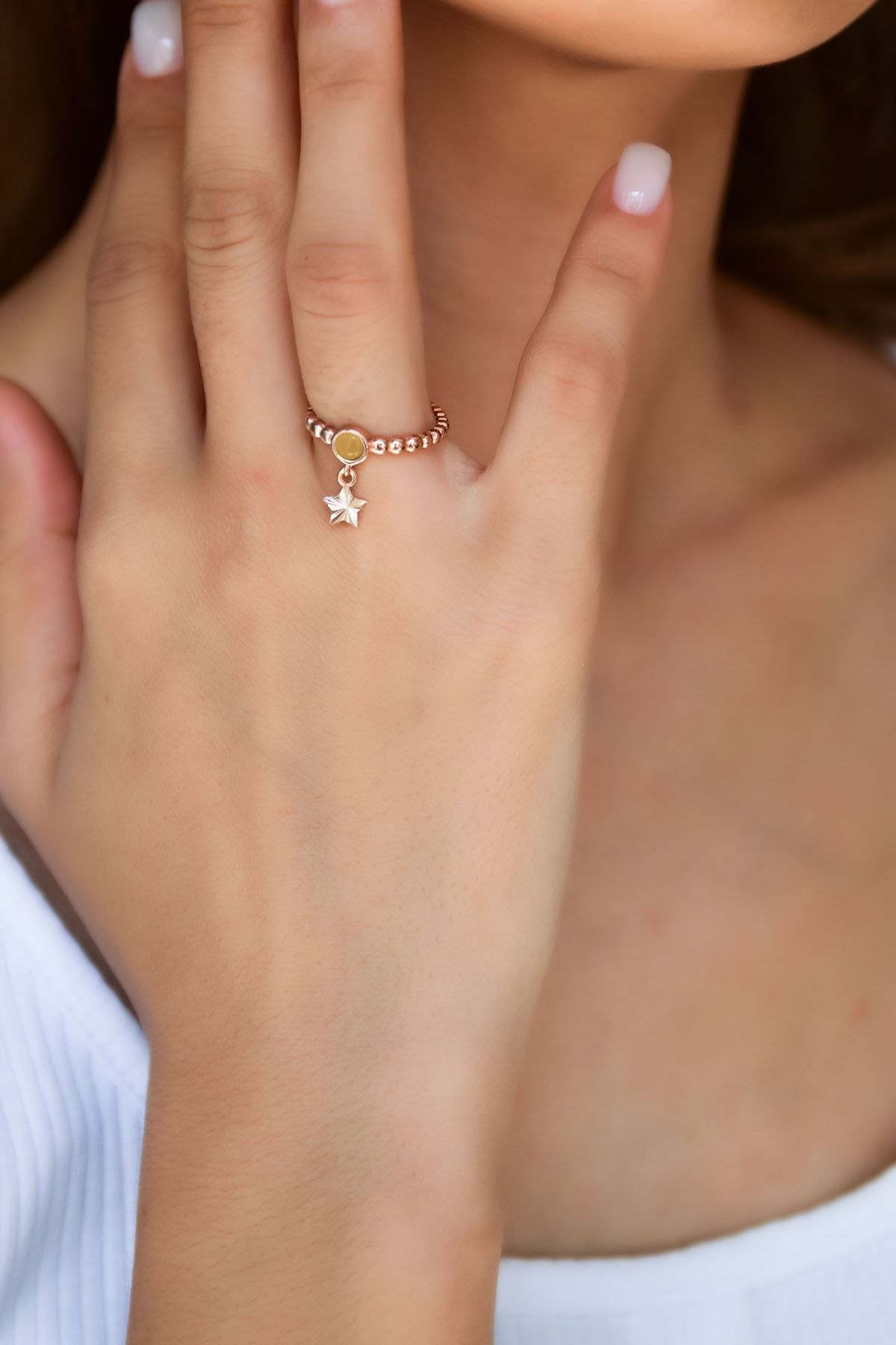 Etiketler925 Ayar Gümüş Sarı Ay Taşlı Yıldız Motifli Ayarlanabilir Kadın Yüzük