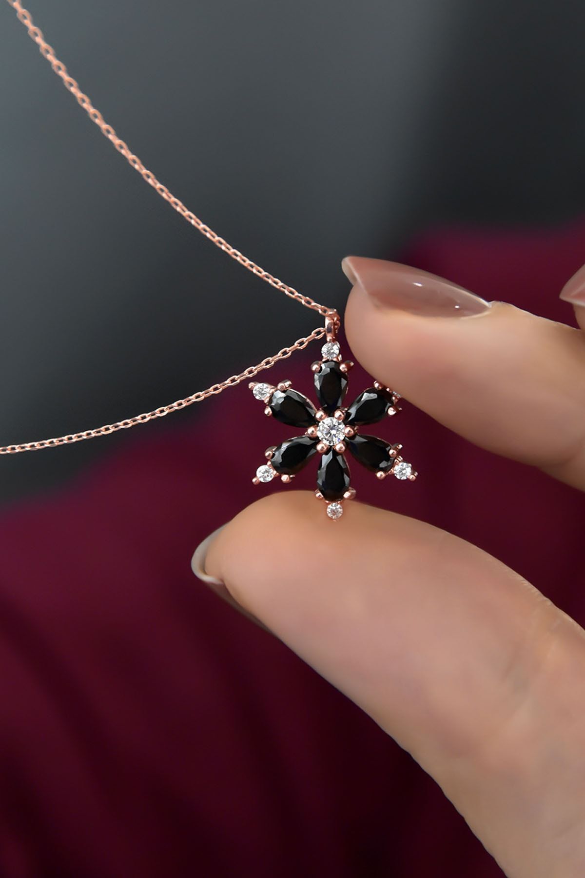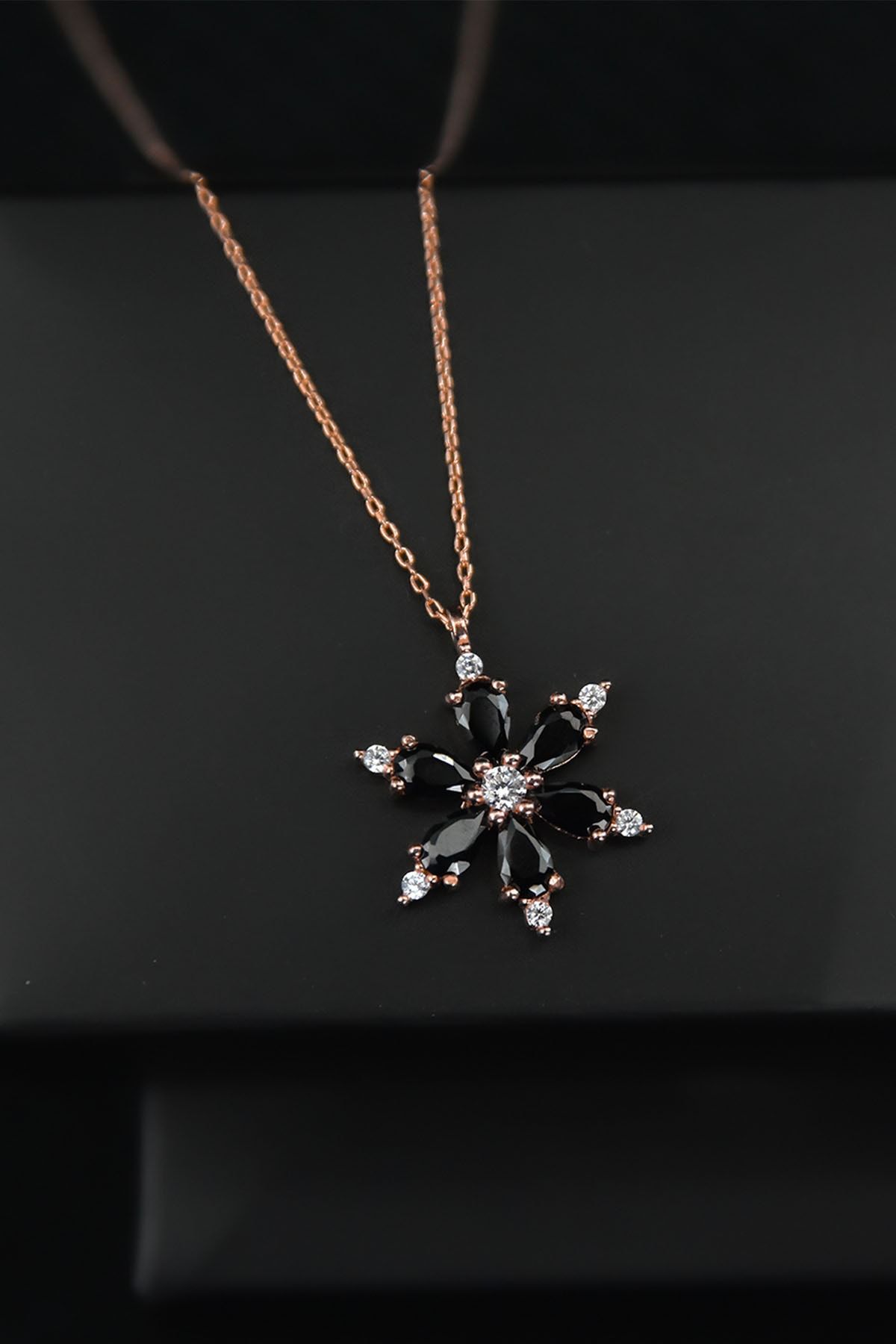 Maden : 925 Ayar Gümüş. Kaplama: Rose Altın. . Renk : Siyah. Taş: Zirkon. Ürün Ebat En x Boy: 1,5 x 1,5 cm. Zincir Uzunluğu: 42 cm. Ürün Ağırlığı : 2,35 Gr ( +-). Gümüş ve değerli taşlar nedeniyle belirtilen ortalama ürün ağırlığında ± %5 sapma olabilmektedir. Teslimat: Ürün ahşap hediye kutusunda gönderilecektir. Kullanım: Parfüm,dezenfektan,çamaşır suyu gibi kimyasallardan uzak tutunuz.
