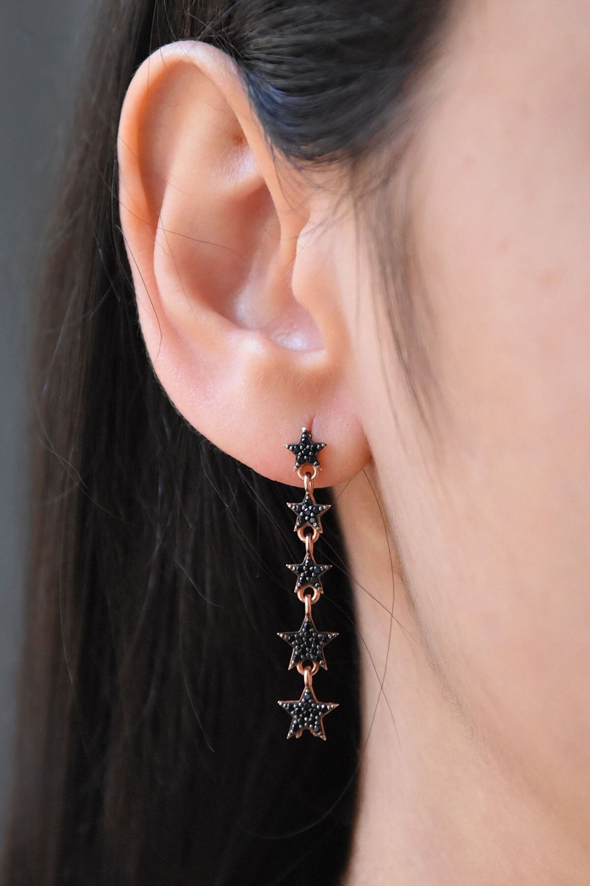 Maden Ayar: 925 Ayar Gümüş.Maden Kaplama: Rose Altın.Ürün Ağırlığı: 2,50 Gr. ( +-).Kolye Zincir Uzunluğu: 42 cm.Kayan Yıldız Küpe Uzunluk: 4 cm.Yıldız Küpe Ebat: 5 mm.Taş:Zirkon.Teslimat: Ürün ahşap hediye kutusunda gönderilecektir.''Gümüş ürünlerin yapısı gereği kararmalar meydana gelebilir daha uzun ömürlü olması için;Parfüm gibi kozmetik ürünlere direkt temas etmediği sürece ürün ömrü daha uzun olacaktır.''