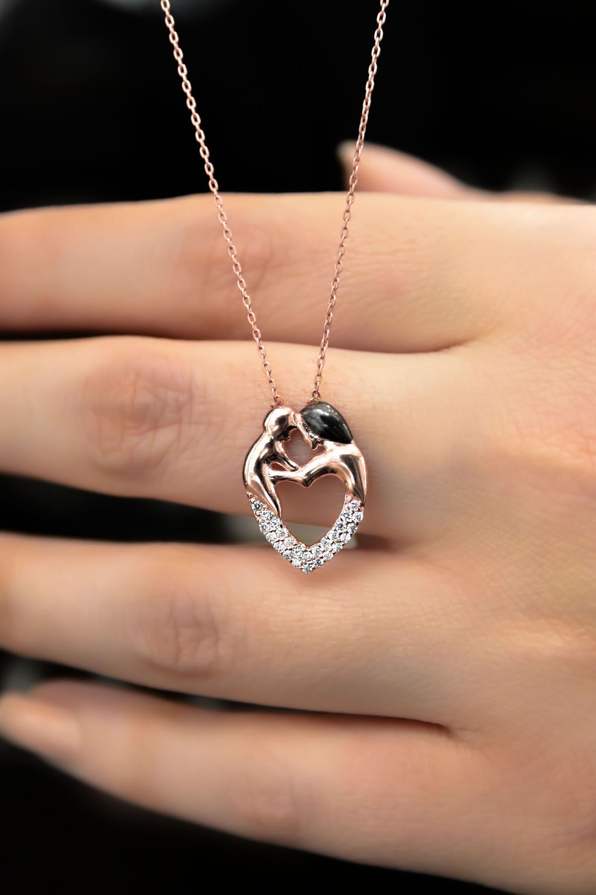 Etiketler925 Ayar Gümüş Taşlı Kalp Sarmalı Anne Çocuk Kadın Kolye