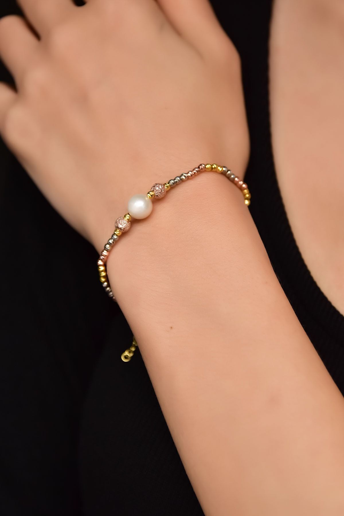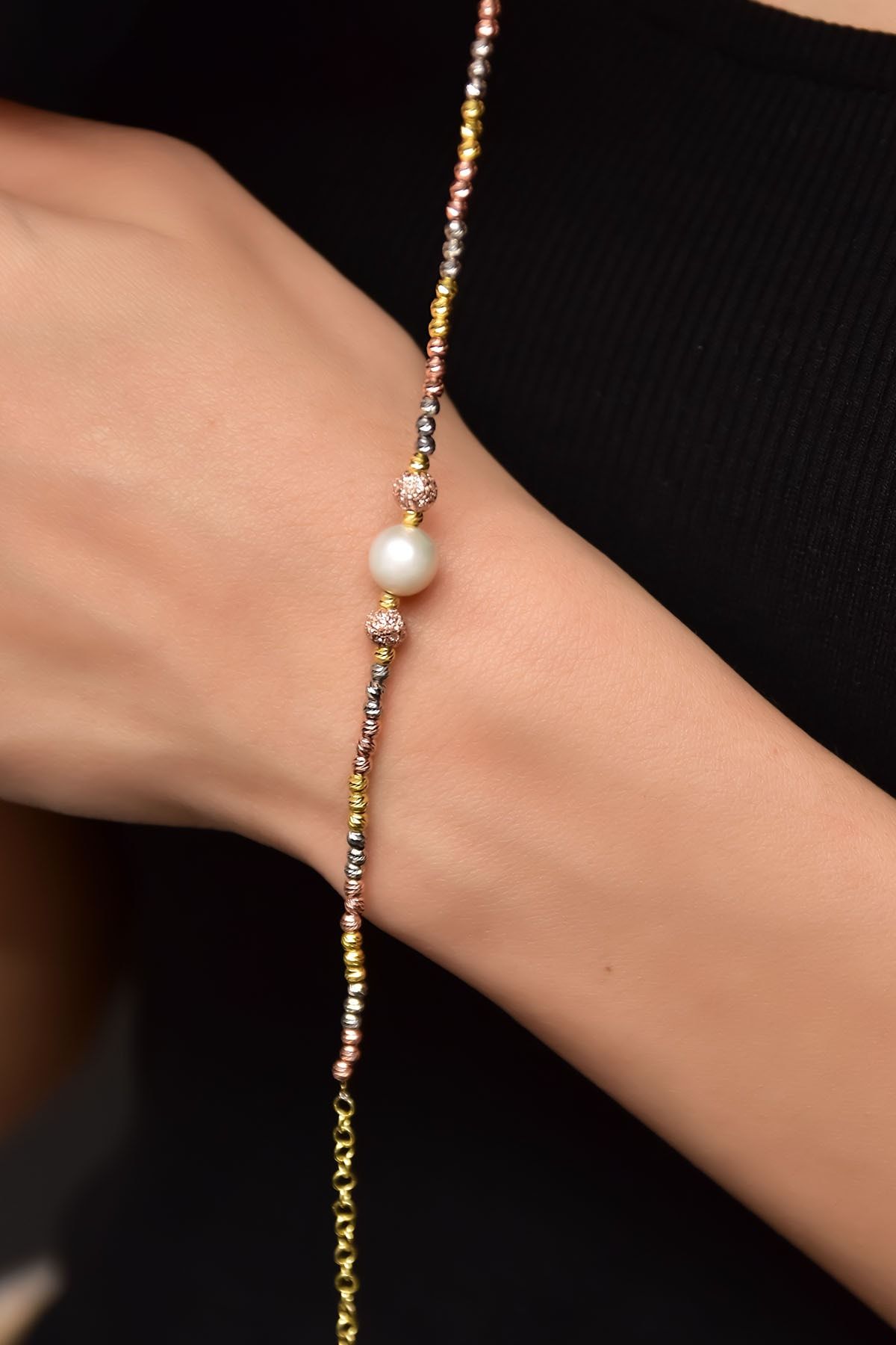 Maden : 925 Ayar Gümüş. Kaplama: Altın, Rose. Zincir Uzunluğu: 18 cm. Taş: İnci. Ürün Ağırlığı : 3,49 Gr ( +-). Gümüş ve değerli taşlar nedeniyle belirtilen ortalama ürün ağırlığında ± %5 sapma olabilmektedir. Teslimat: Ürün ahşap hediye kutusunda gönderilecektir. Kullanım: Parfüm, dezenfektan, çamaşır suyu gibi kimyasallardan uzak tutunuz.