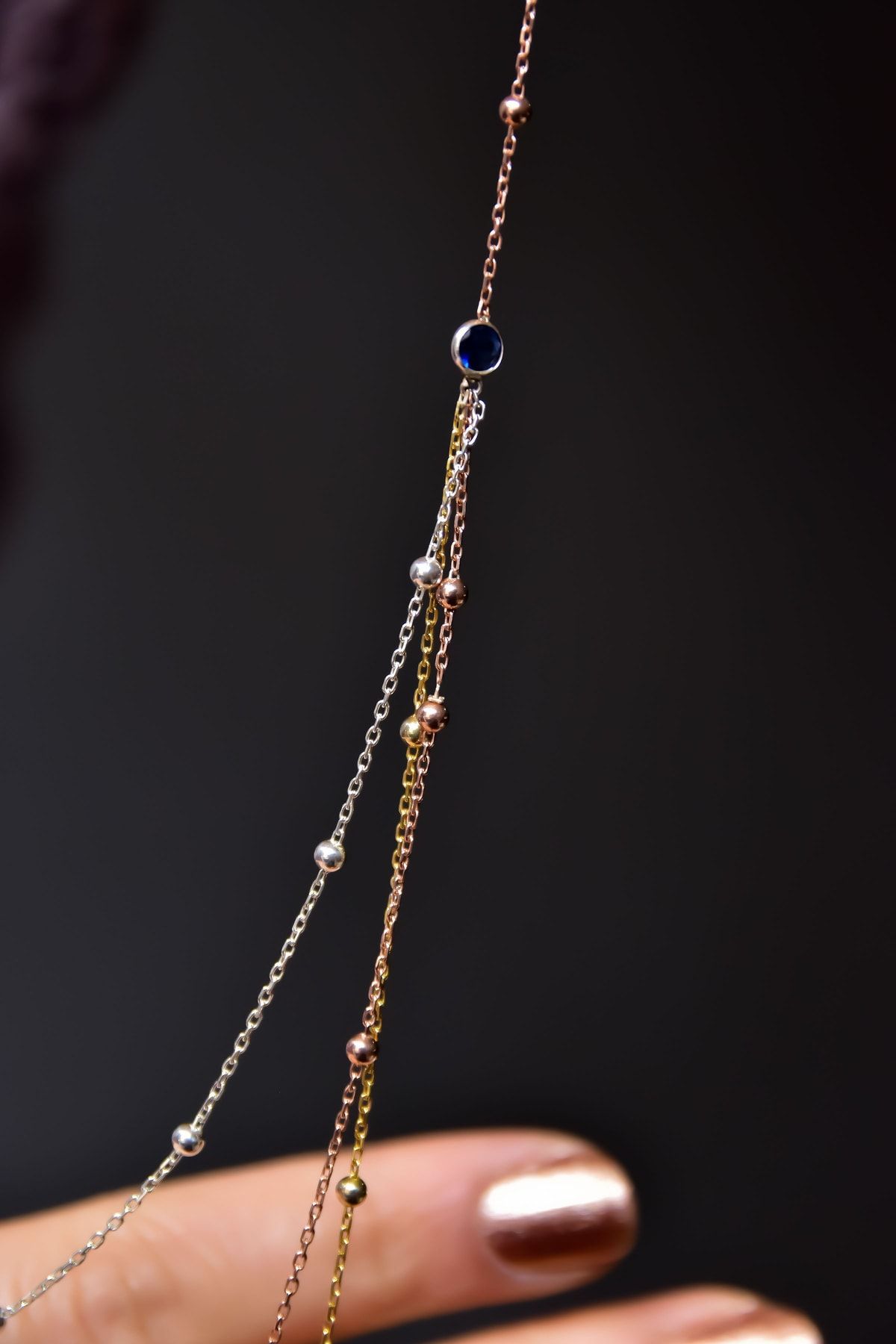 Maden : 925 Ayar Gümüş. Kaplama: Üç Renk. Zincir:42+5 cm. Ürün Ağırlığı : 4,59 Gr ( +-). Gümüş ve değerli taşlar nedeniyle belirtilen ortalama ürün ağırlığında ± %5 sapma olabilmektedir. Teslimat: Ürün ahşap hediye kutusunda gönderilecektir. Kullanım: Parfüm, dezenfektan, çamaşır suyu gibi kimyasallardan uzak tutunuz.