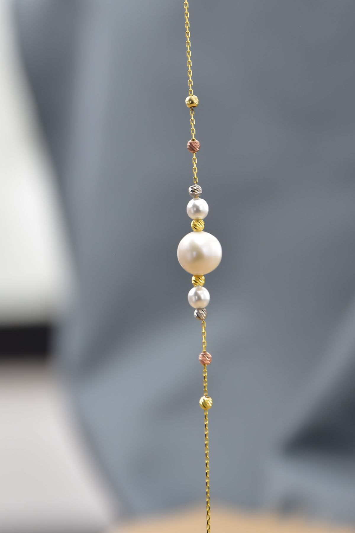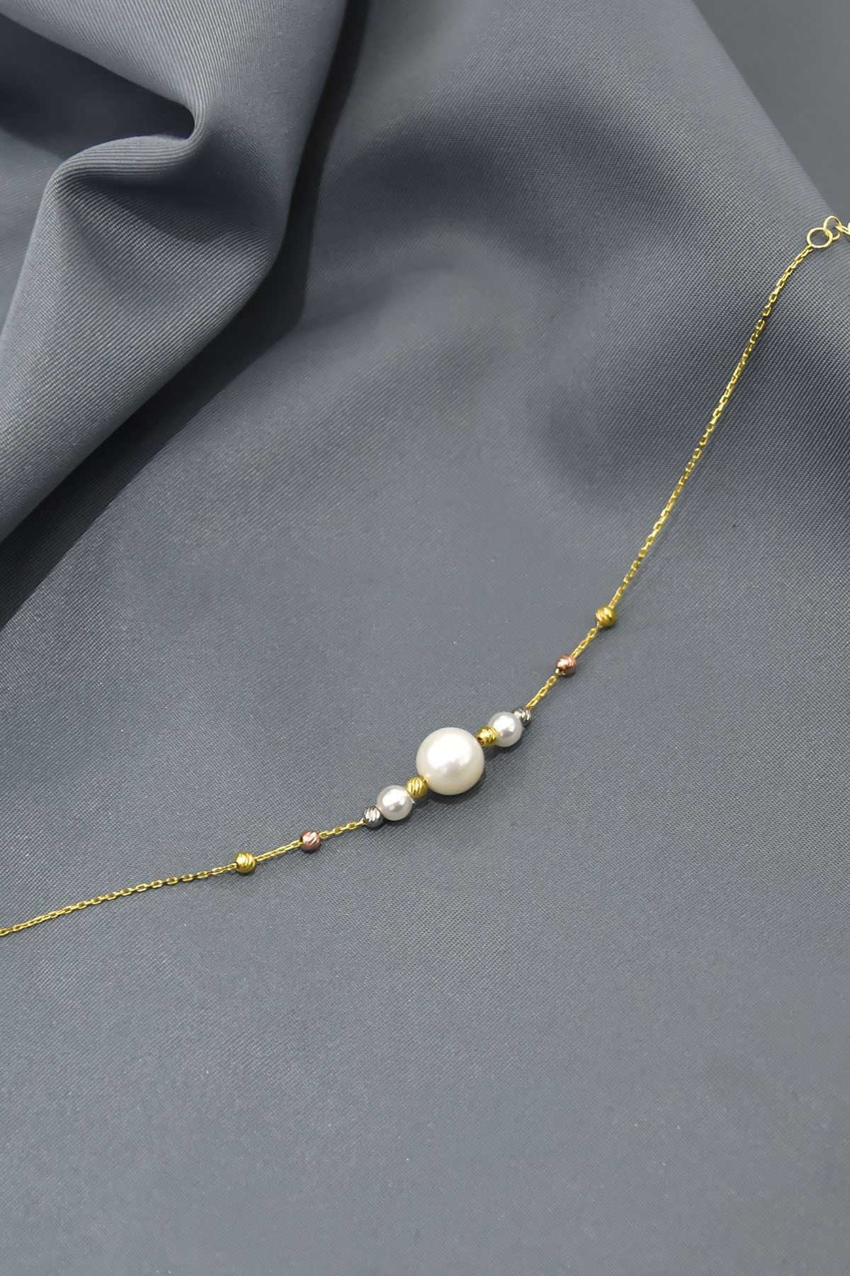 925 Ayar Gümüş Üç Renk Kaplama Dorika Toplu Incili Kadın Bileklik