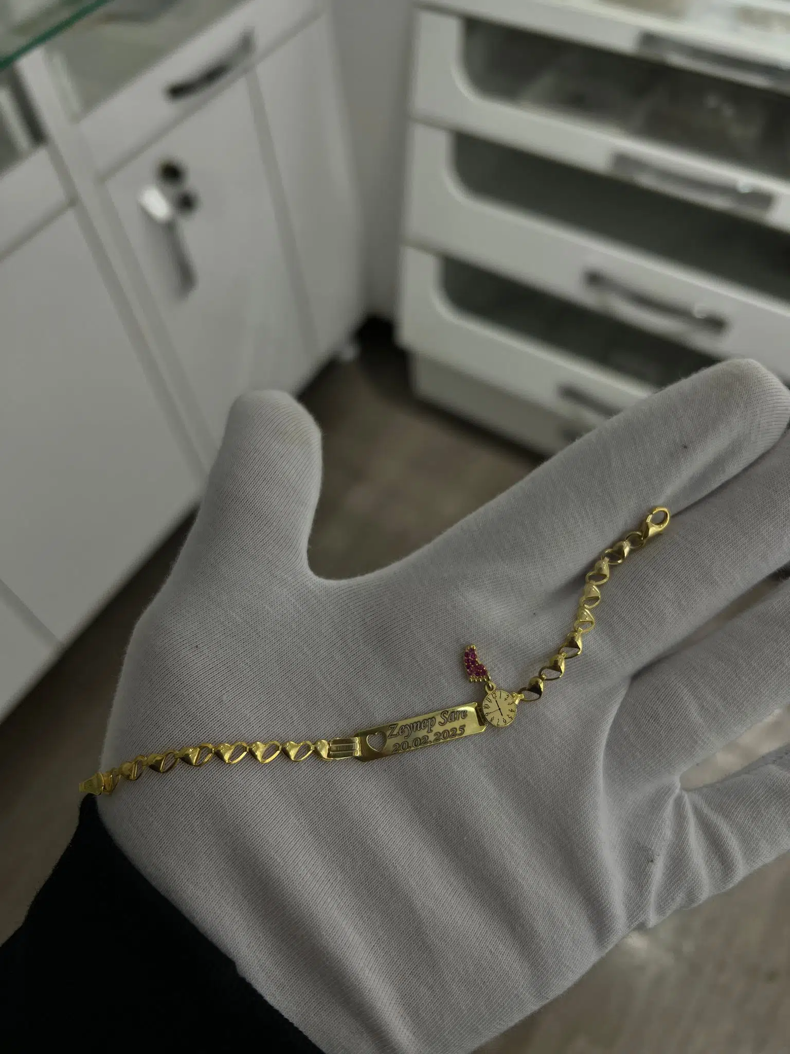 Maden : 925 Ayar Gümüş . Kaplama :Gold. Ağırlık:4,50 gr. Zincir Boyu: 1-5 YAŞ. Lütfen İstenilen İsmi Satın Aldıktan Sonra Satıcıya Soru Sor Kısmından Bildiriniz. Teslimat: Ürün ahşap hediye kutusunda gönderilecektir. Gümüş ve değerli taşlar nedeniyle belirtilen ortalama ürün ağırlığında ± %5 sapma olabilmektedir. Kullanım: Parfüm, dezenfektan, çamaşır suyu gibi kimyasallardan uzak tutunuz.