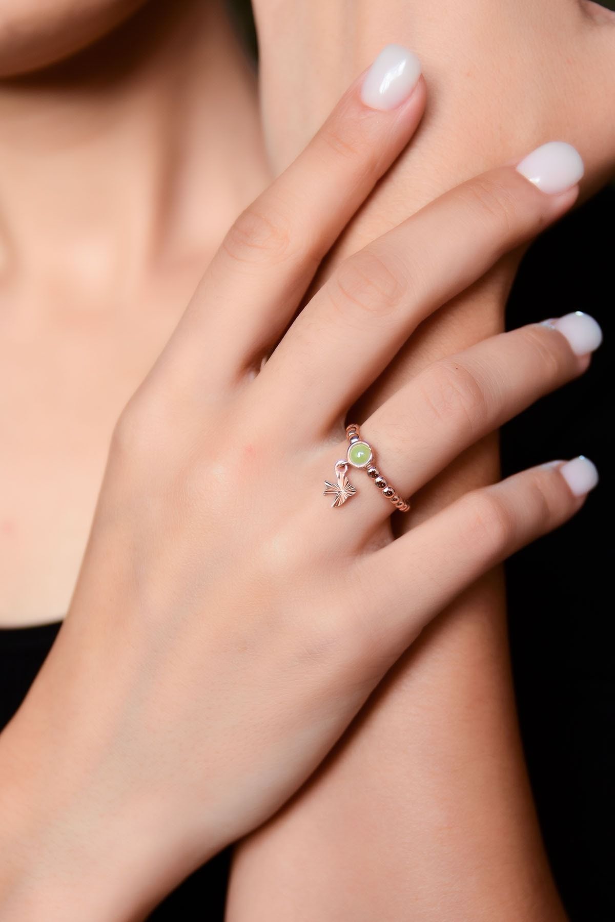 Etiketler925 Ayar Gümüş Yeşil Ay Taşlı Kırlangıç Motifli Ayarlanabilir Kadın Yüzük