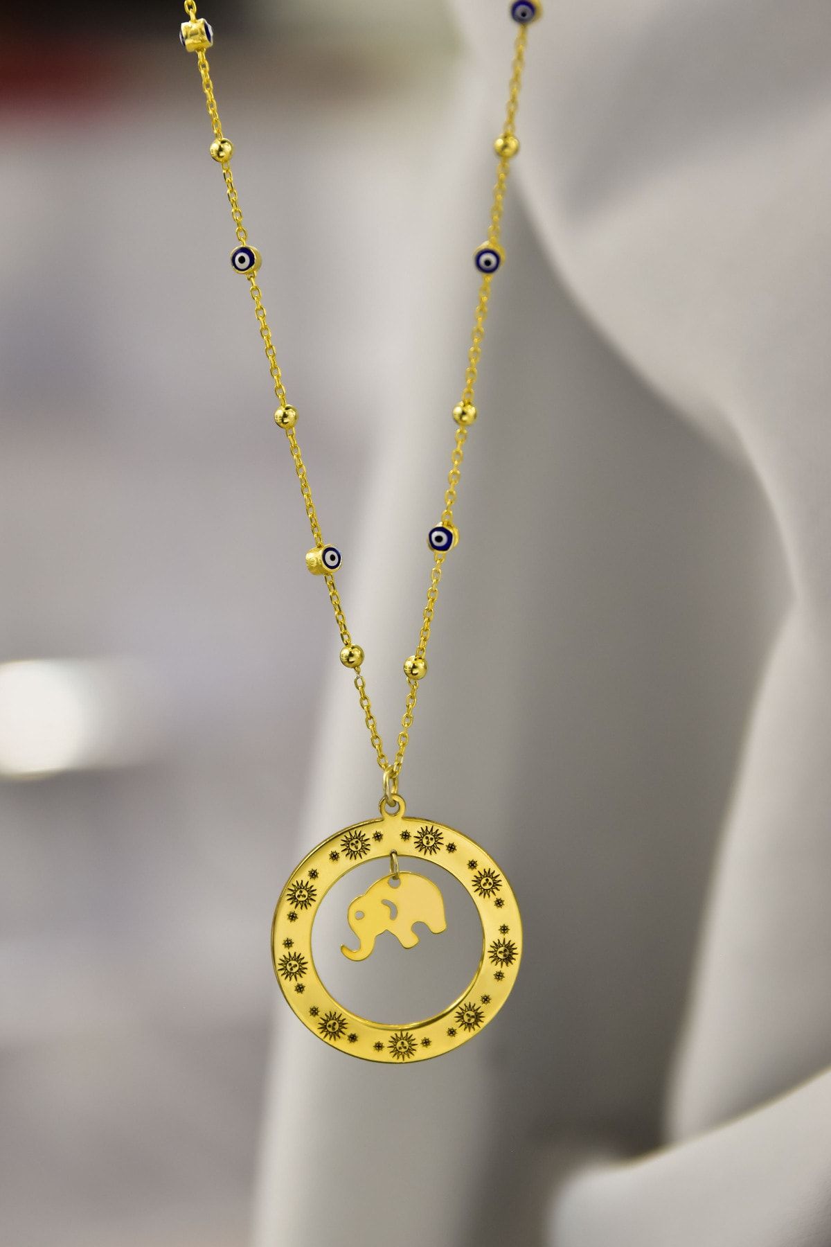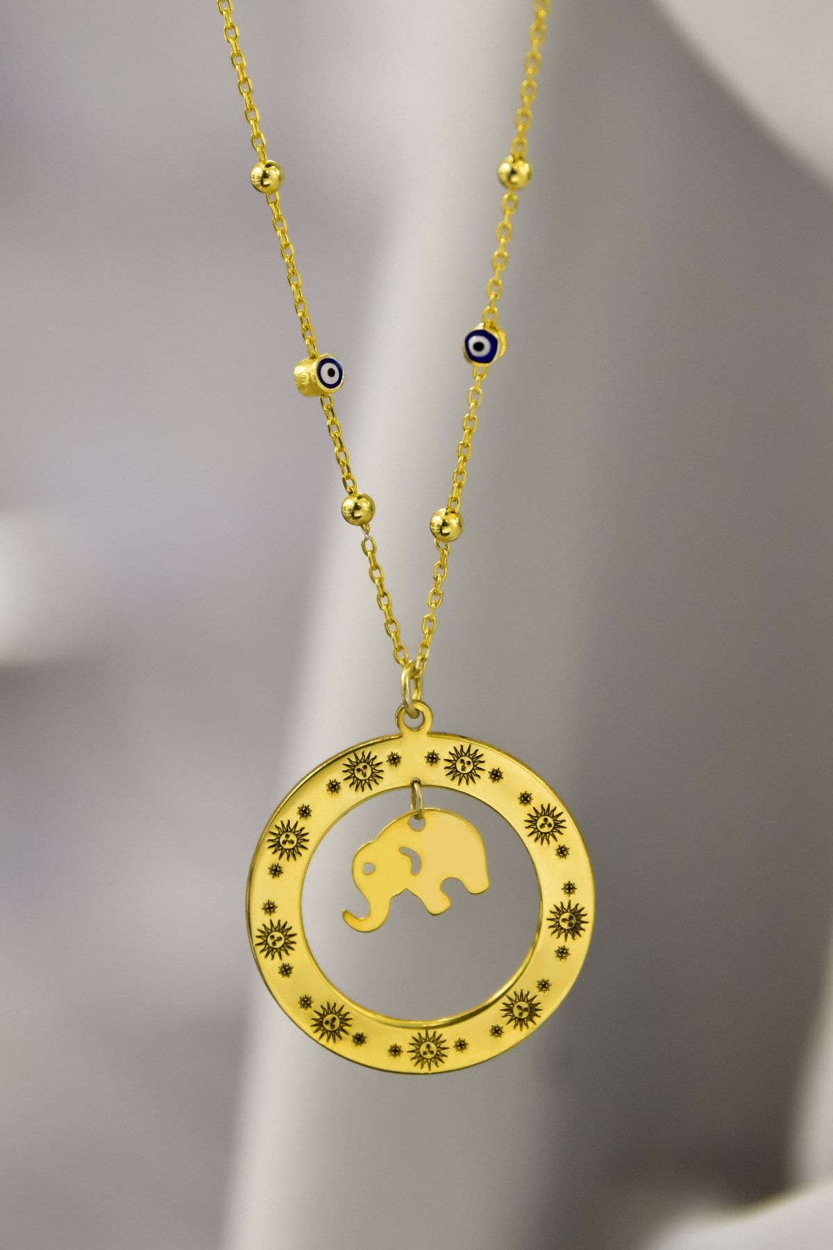 Etiketler925 Ayar Gümüş Yunan Mitolojisi Helios Çemberli,Gücün Tılsımı Fil Sembolü Nazar Mineli Zincir Kolye