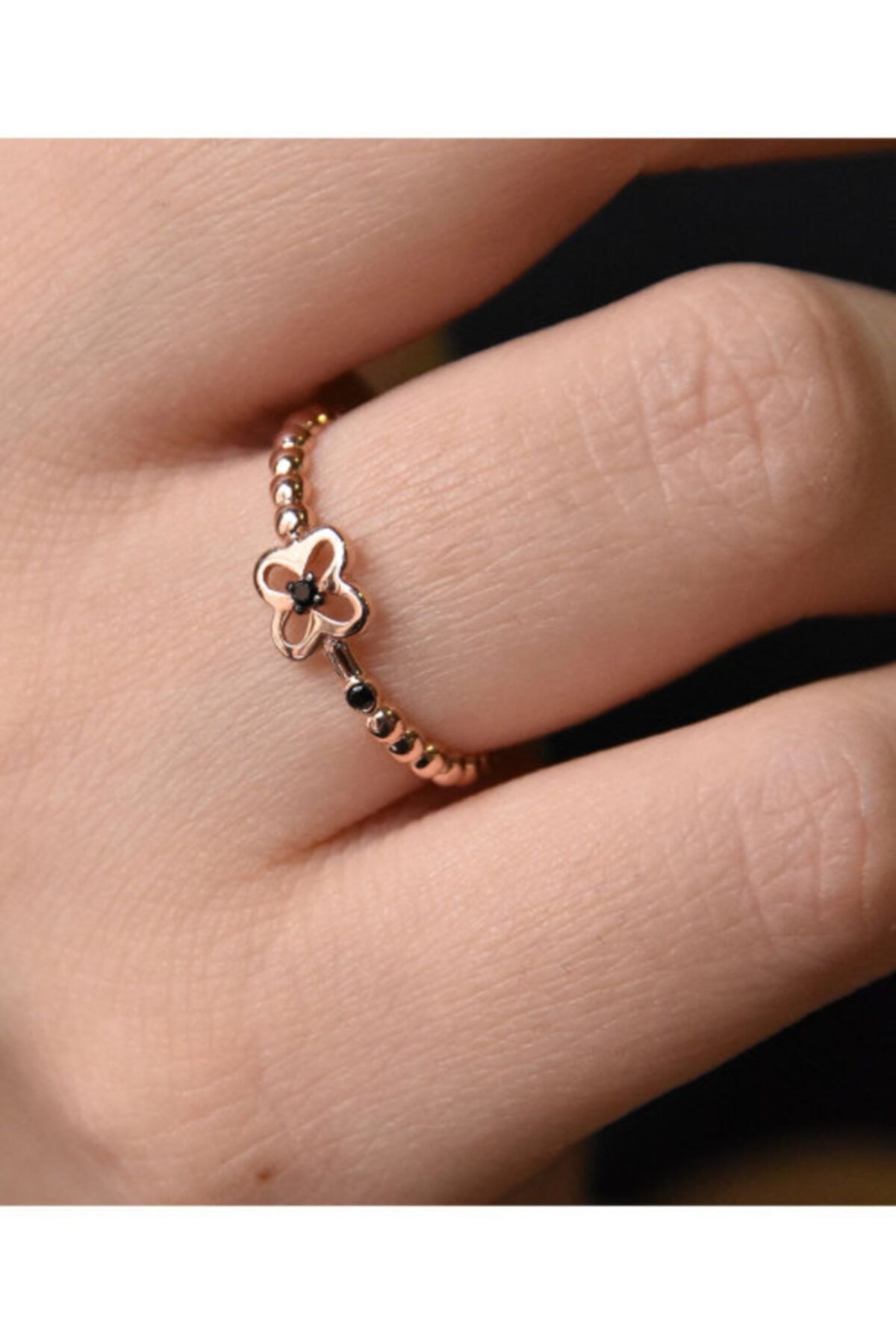 925 Ayar Gümüş Zirkon Taş Detaylı Yonca Yüzük Maden Ayar: 925 Ayar Gümüş Maden Kaplama: Rose Kaplama. Taş Cinsi: Siyah Zirkon. Ağırlık: 1,04gr (-+) Ürün boyutu ve değerli taşlar nedeniyle belirtilen ortalama ürün ağırlığında ± %1 sapma Teslimat: Ürün kutu ile gönderilecektir.