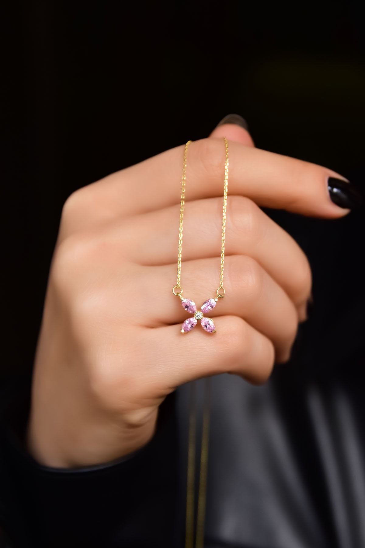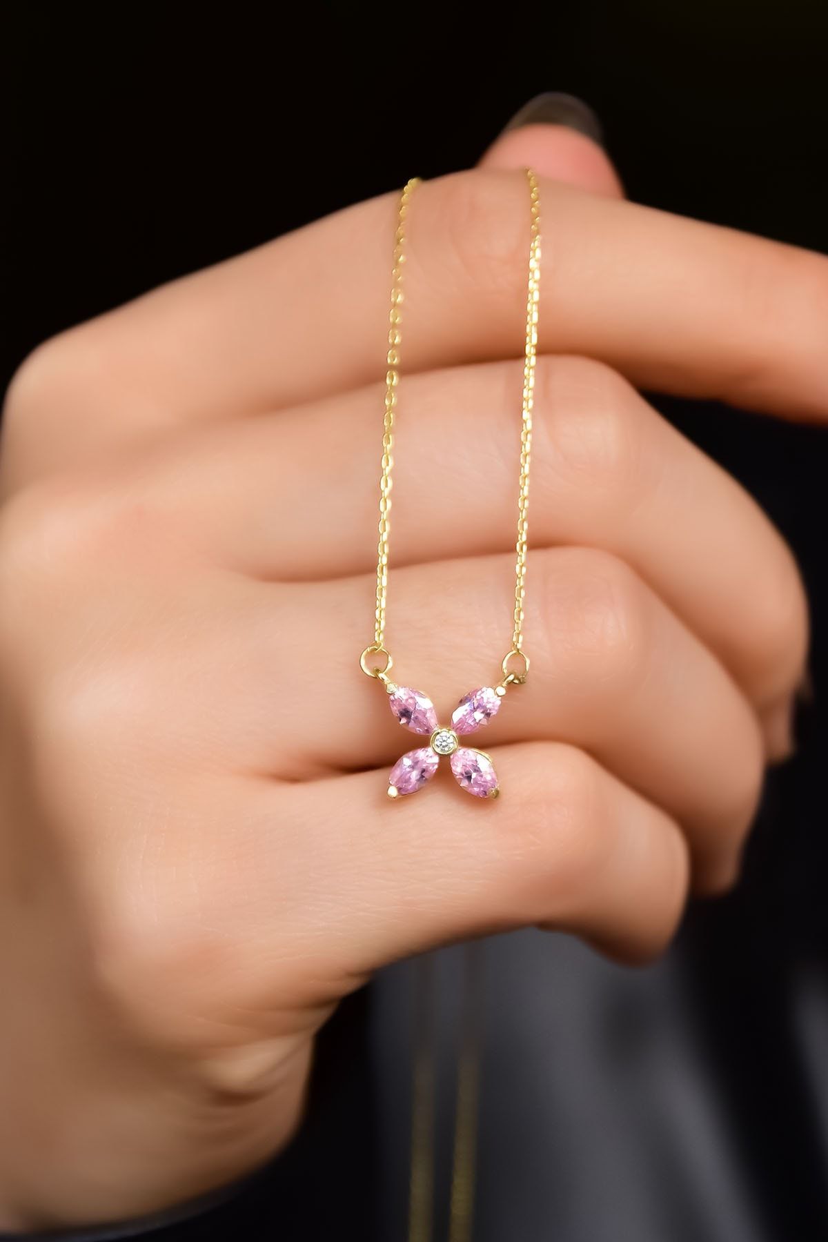 Etiketler925 Ayar Gümüş Zirkon Taşlı doğum taşı Plumeria Kolye.rose.gold.rodaj