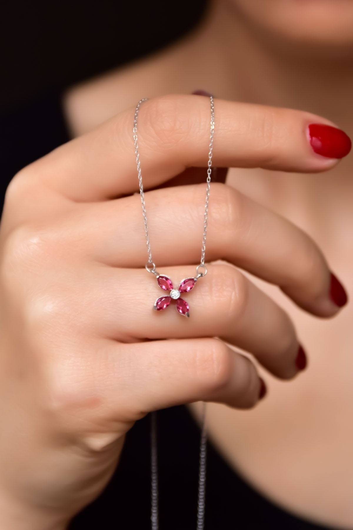 Etiketler925 Ayar Gümüş Zirkon Taşlı doğum taşı Plumeria Kolye.rose.gold.rodaj