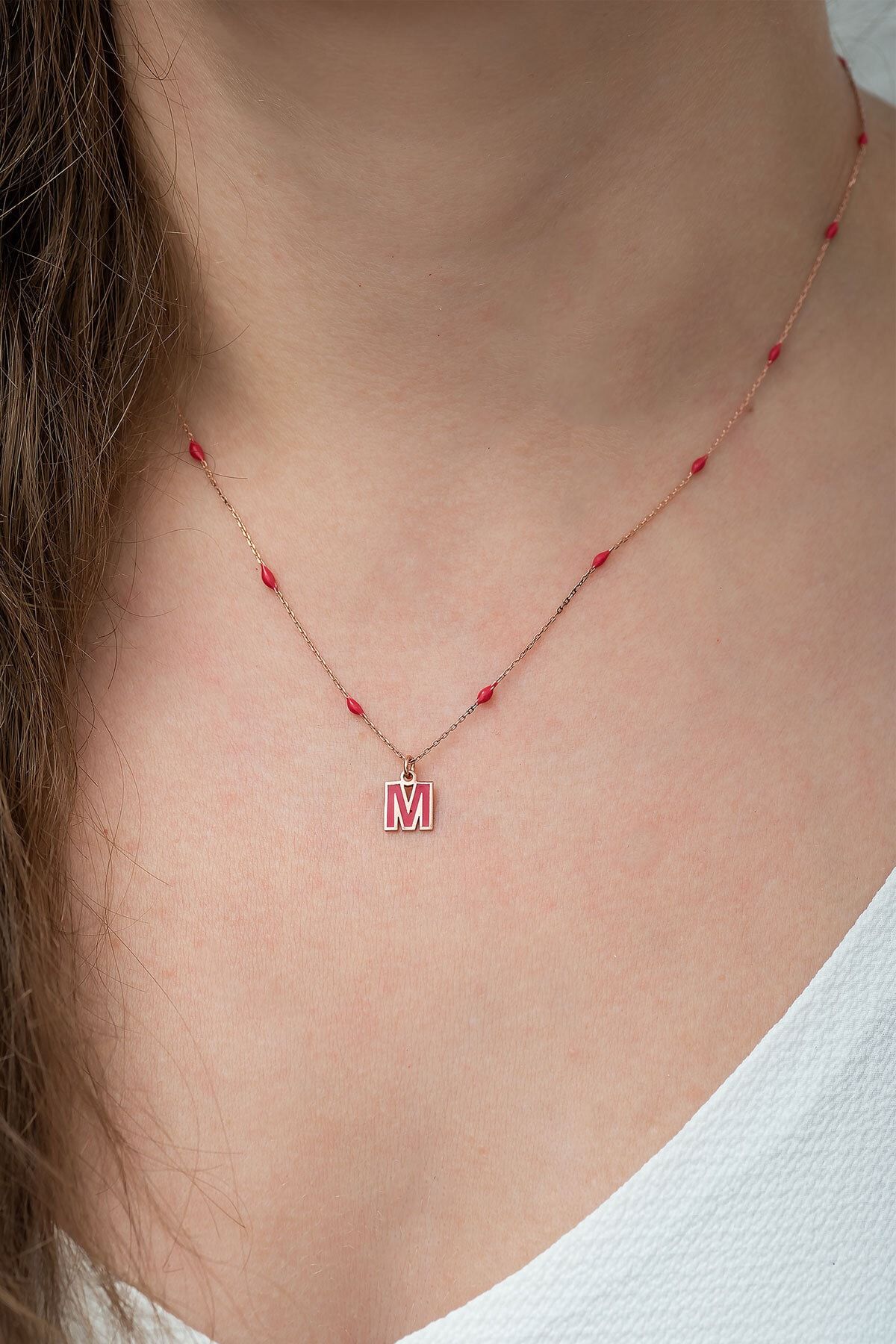 Etiketler925 Ayar Mineli M Harfi Gümüş Kolye