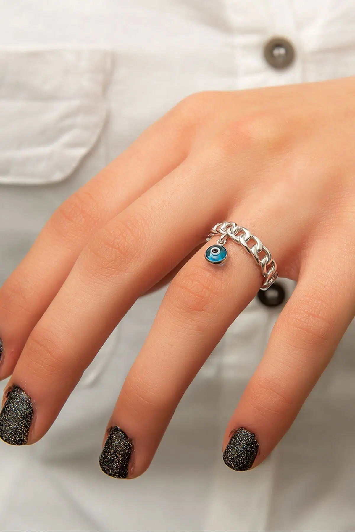 925 Ayar Nazar Boncuklu Gümüş Yüzük. Maden : 925 Ayar Gümüş. Kaplama: Gümüş. Renk : Gümüş. Taş: Mine. Yüzük Ölçüsü: Ayarlanabilir. Ürün ağırlığı : 2,50 Gr (+-). Teslimat: Papatya Silver tarafından Ürün ahşap hediye kutusunda gönderilecektir.