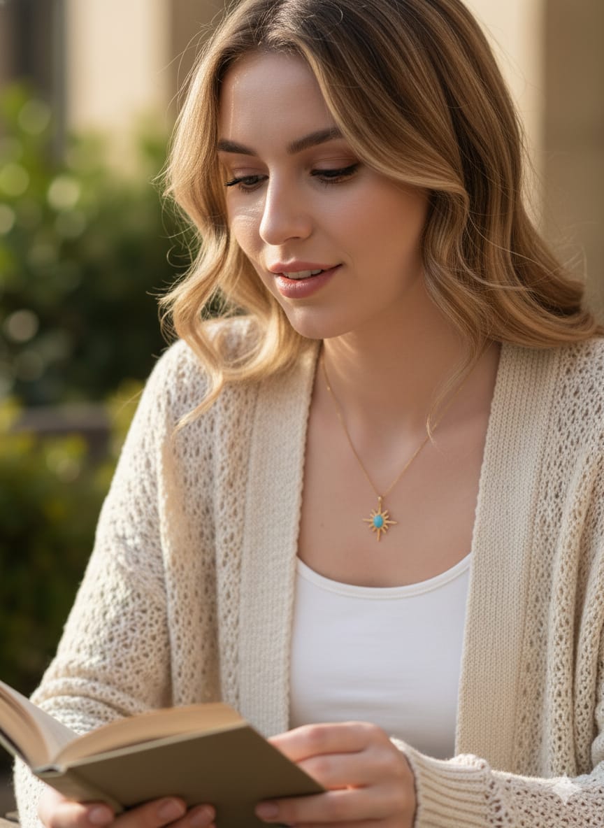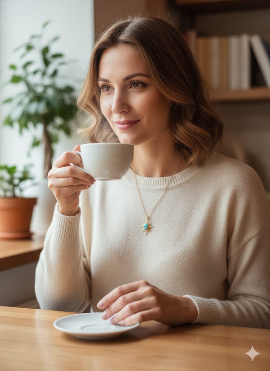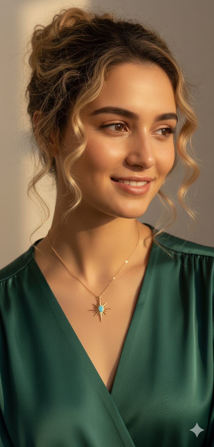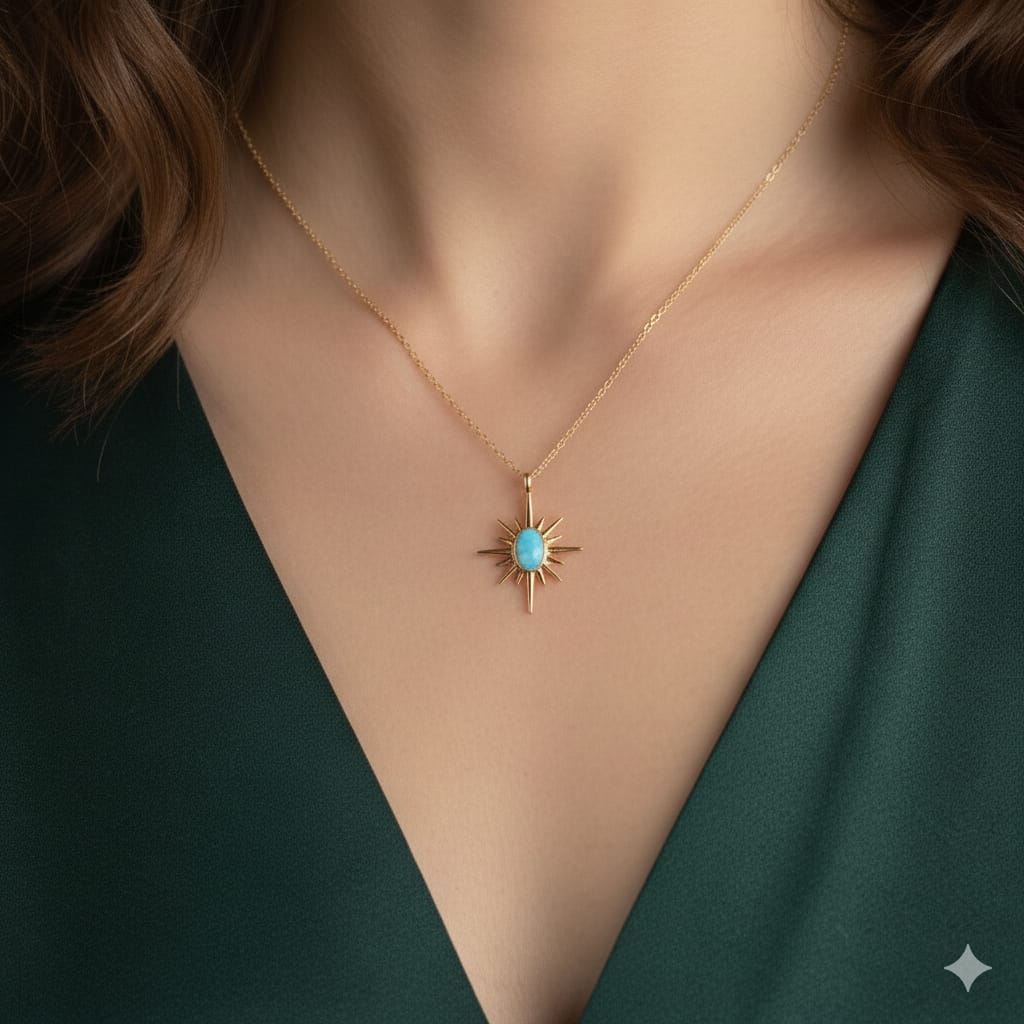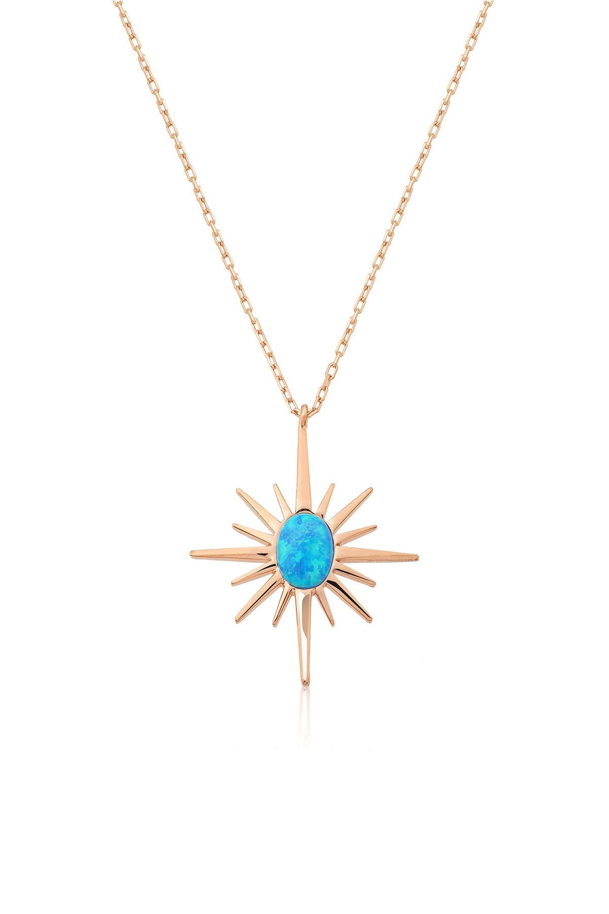925 Ayar Rose Altın Kaplama Siyah Taşlı Gümüş Kutup Yıldızı Kolye
