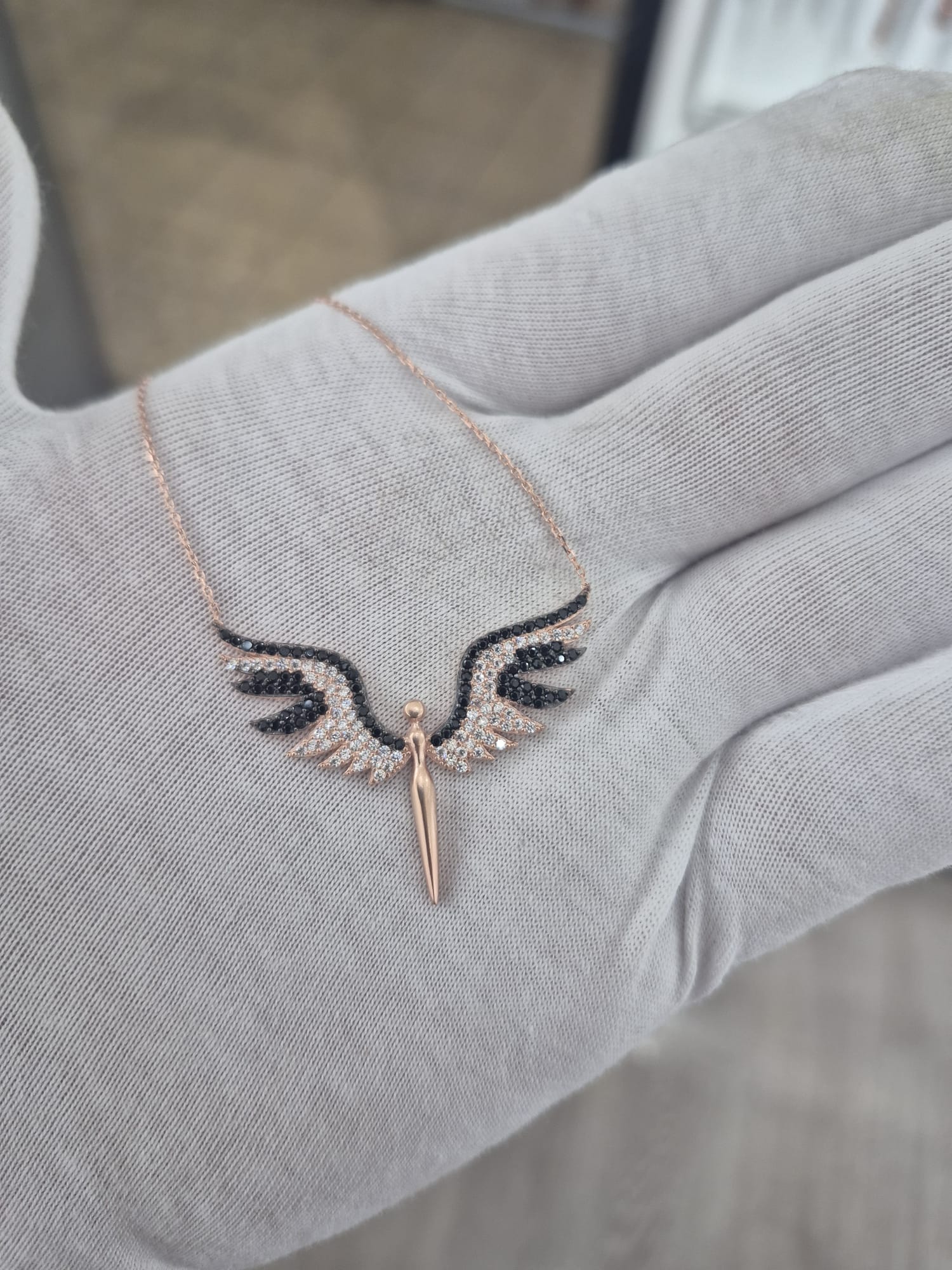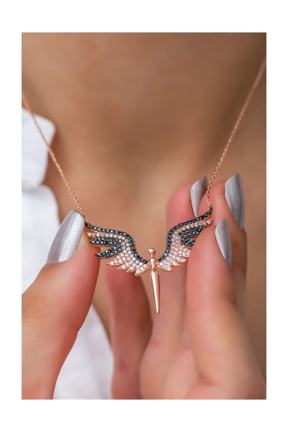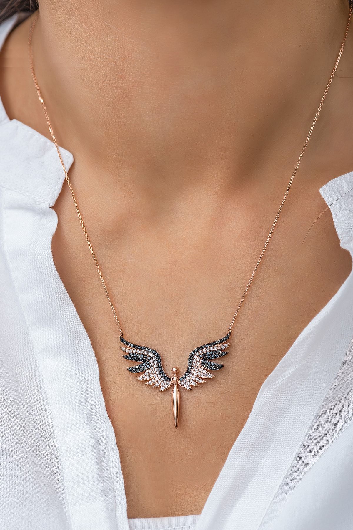 925 Ayar Papatya Silver Mikail Meleği Kolye.rose.gold.rodaj