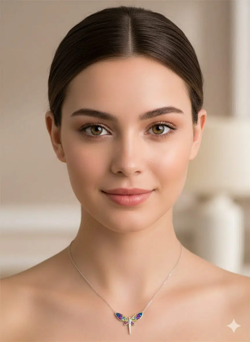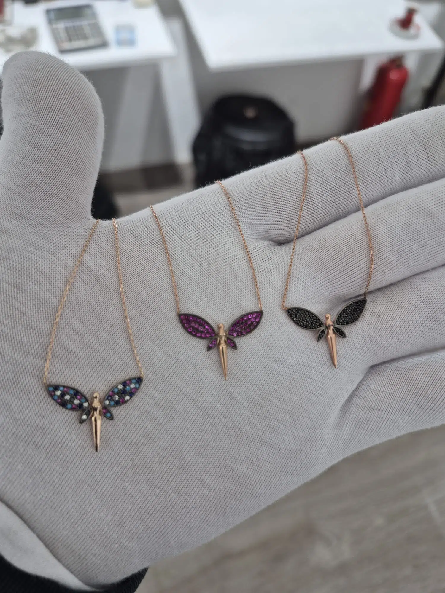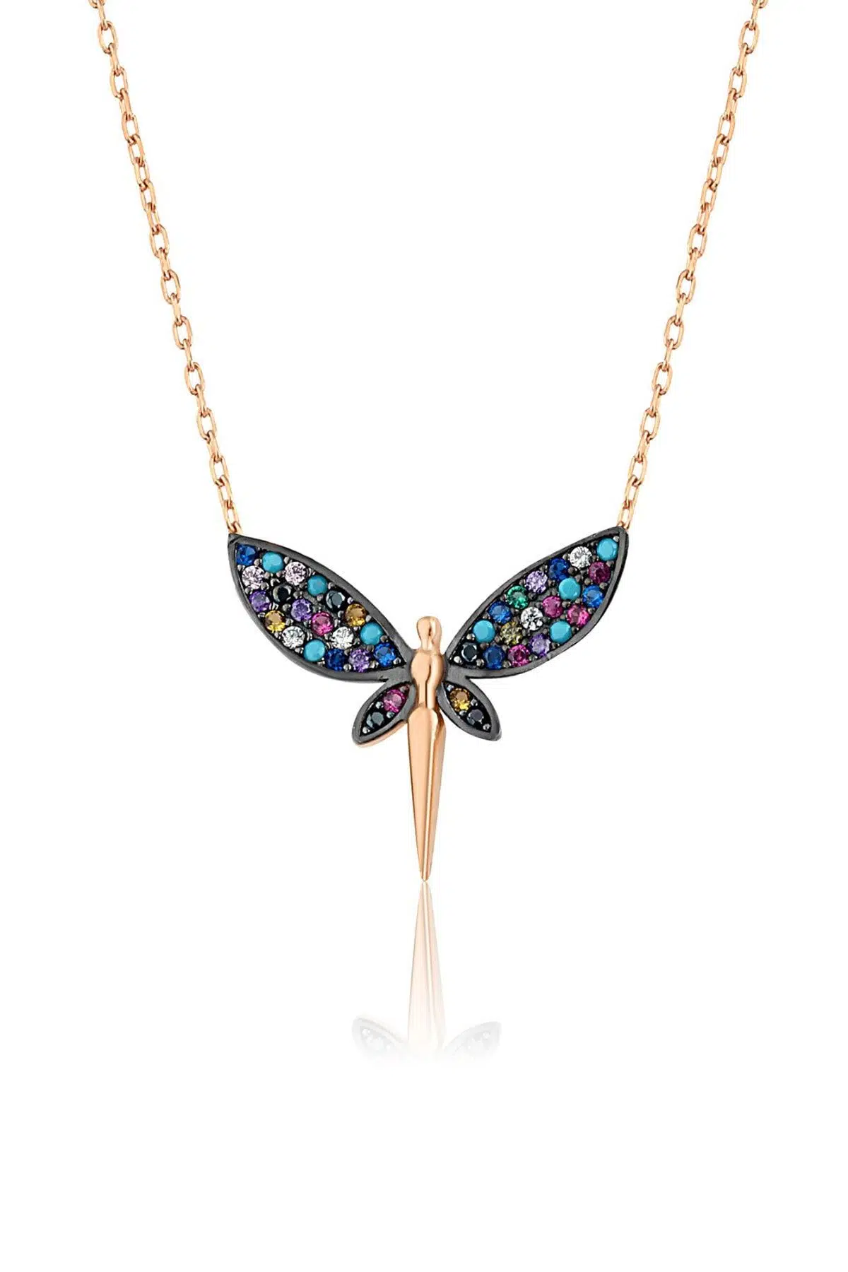 925 Ayar Renkli Taşlı Gümüş Yusufçuk KolyeMaden : 925 Ayar GümüşRenk : Rose AltınZincir uzunluğu : 43 cm.Ürün ağırlığı : 2,00. Gr (+-).Teslimat: Papatya Silver tarafından Ürün ahşap hediye kutusunda gönderilecektir.