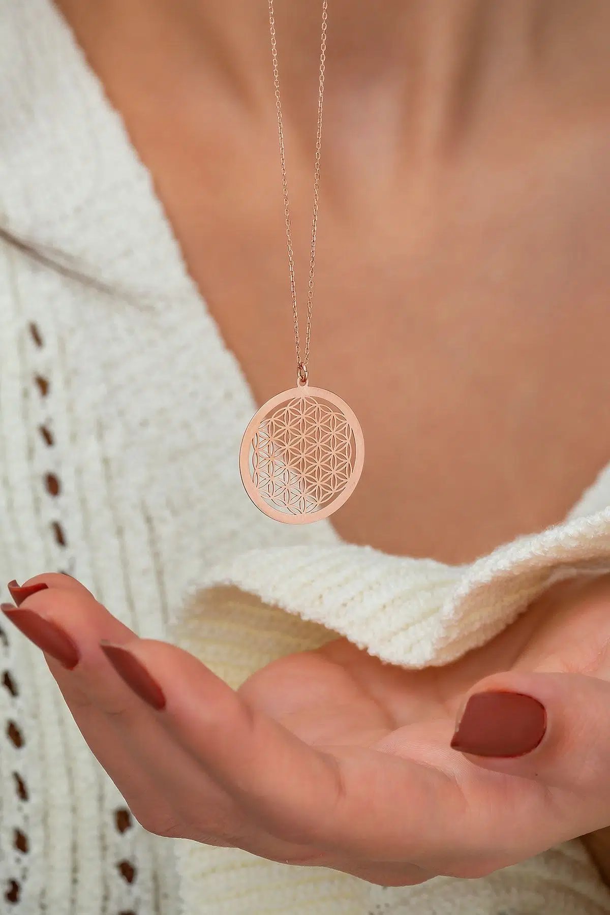 Yaşam Çiçeği Rose Altın Kaplama 925 Ayar Gümüş Kolye - UVPS100527 Maden : 925 Ayar gümüş. Taş : Kaplama : Rose Altın kaplama. Zincir uzunluğu : 43 cm. Ürün ağırlığı : 2,0 Gr (+-). Gümüş ve değerli taşlar nedeniyle belirtilen ortalama ürün ağırlığında ± %10 sapma olabilmektedir Teslimat : Ürün hediye kutusunda gönderilecektir.