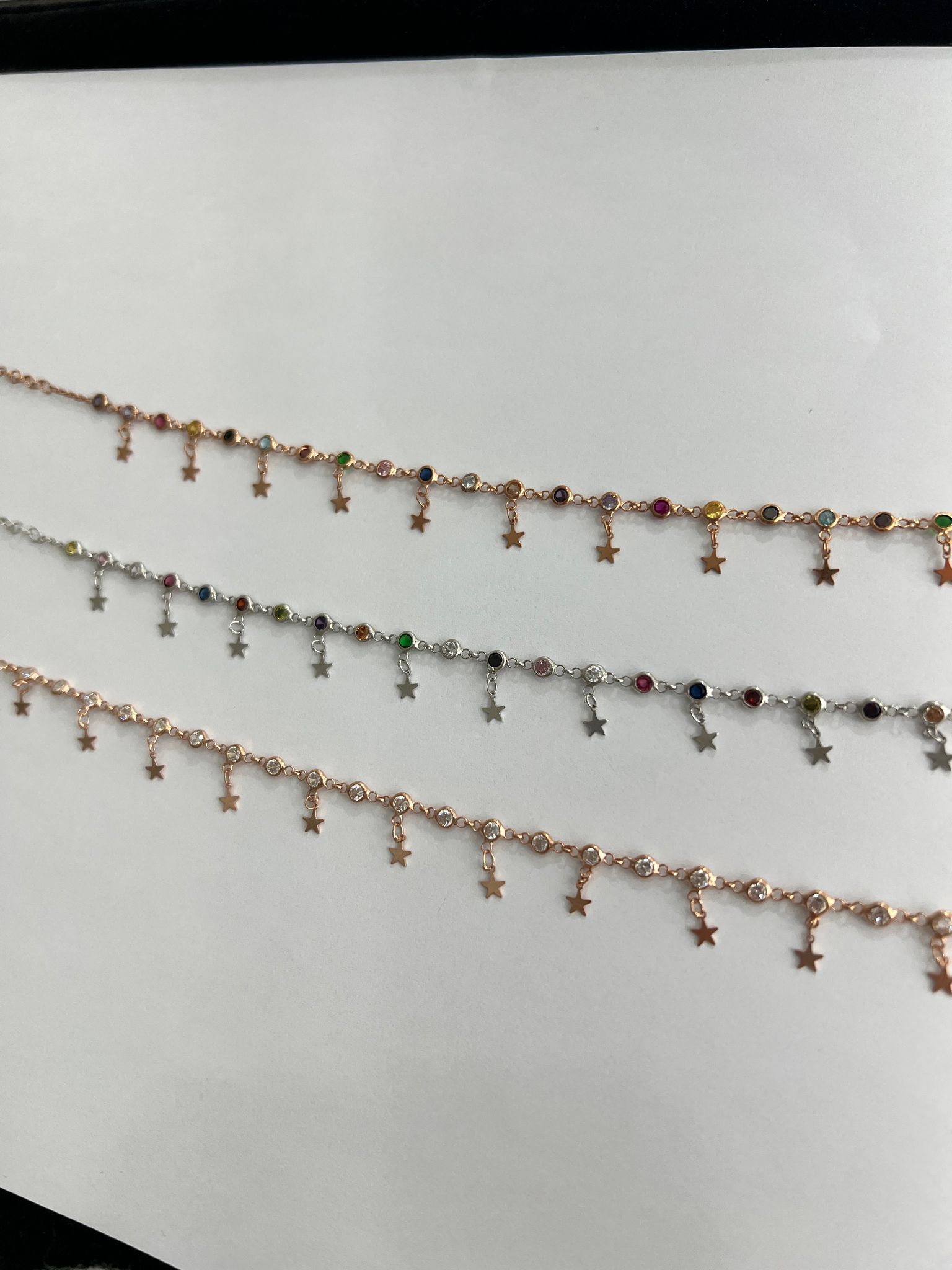 Renkli Taş Sıvama Sallantılı Yıdız Gümüş Hadise Halhal Rose Altın Kaplama 925 ayar Gümüş Halhal UVPS800031Maden : 925 Ayar gümüş.Taş : Nano ZirkonKaplama : Rose Altın kaplamaRenk : AltınZincir uzunluğu : 22 + 5 cm.Ürün ağırlığı : 8 Gr (+-).Teslimat :Ürün hediye kutusunda gönderilecektir.