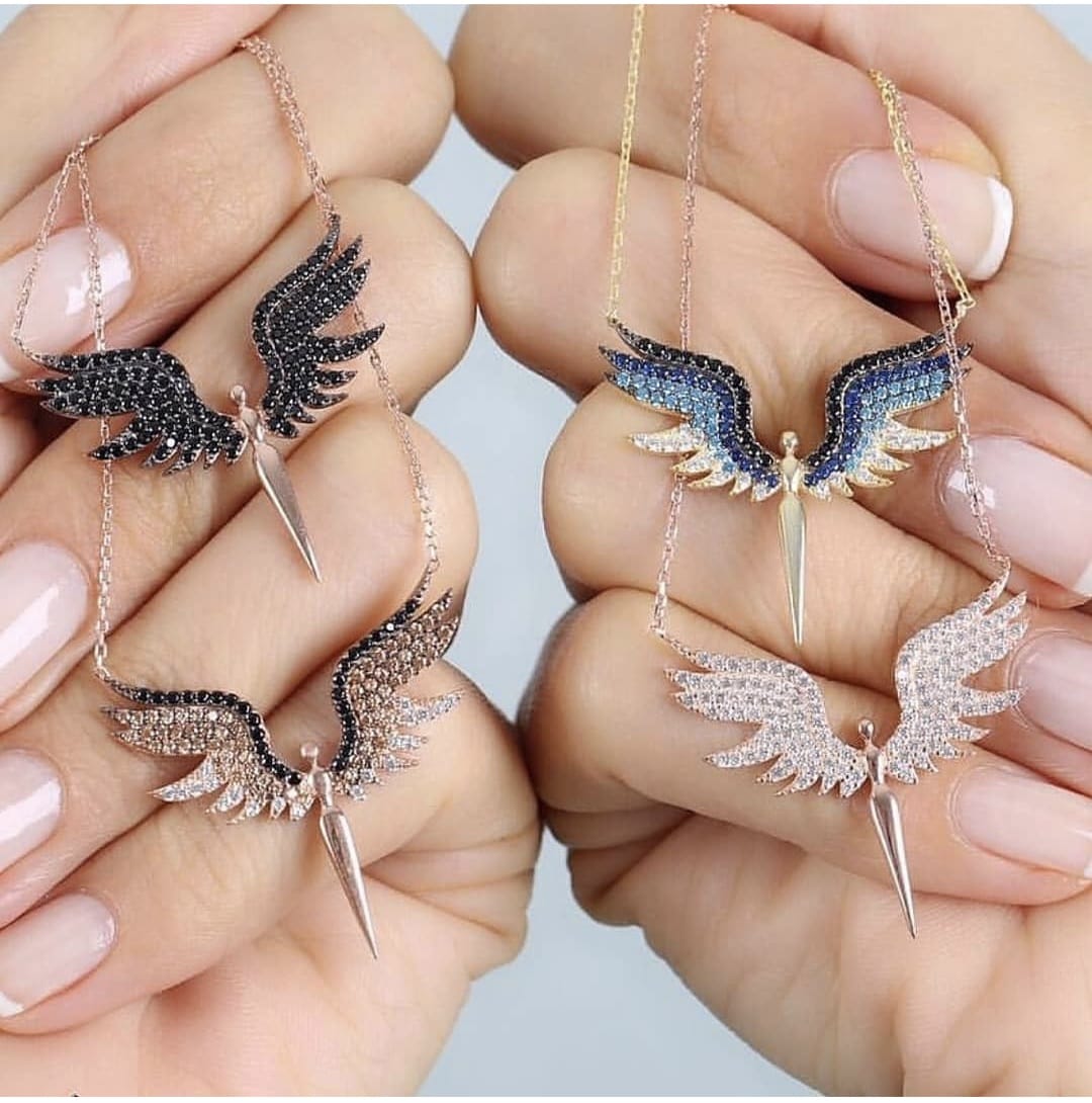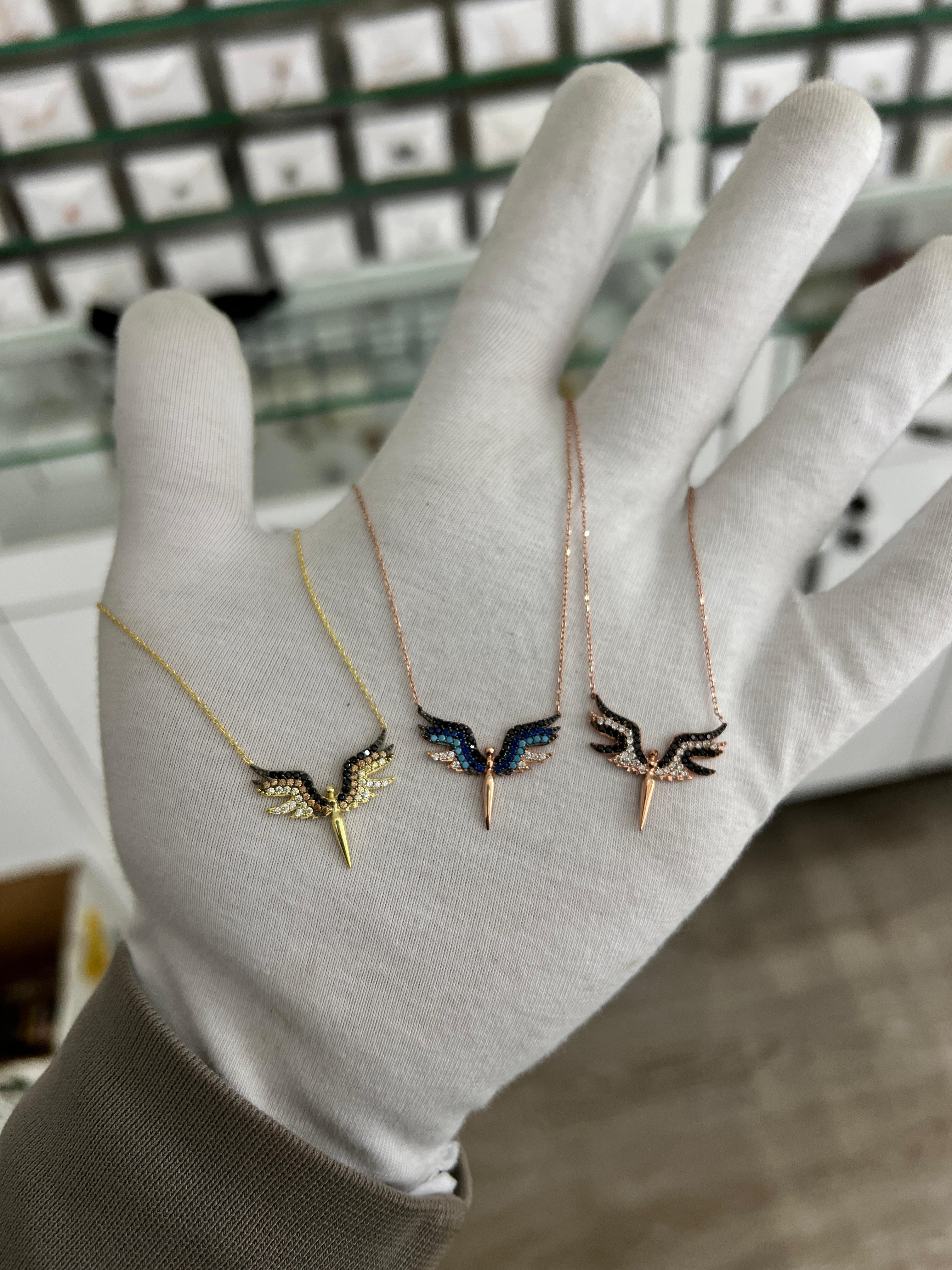 925 Ayar Renkli Taşlı Mikail Meleği Gümüş Kolye